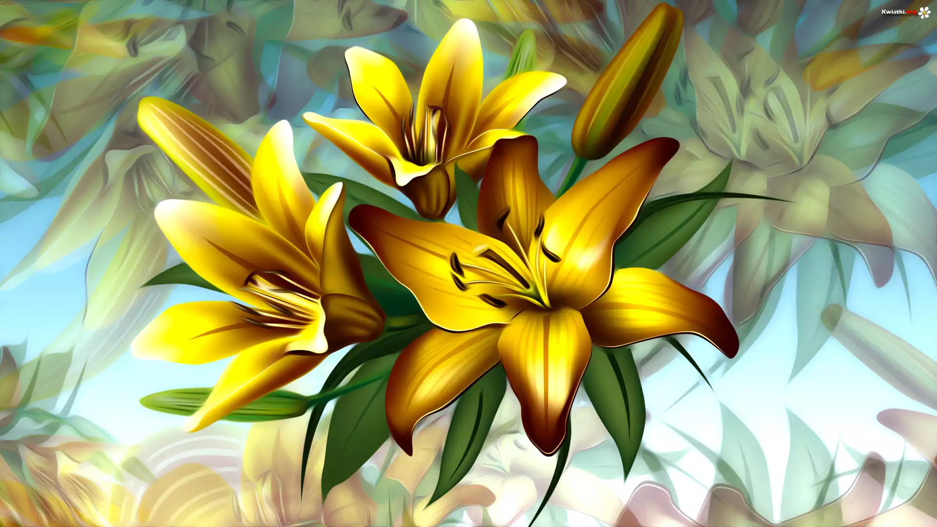 Grafika, Kwiaty, Żółte, Lilie - Zdjęcia
