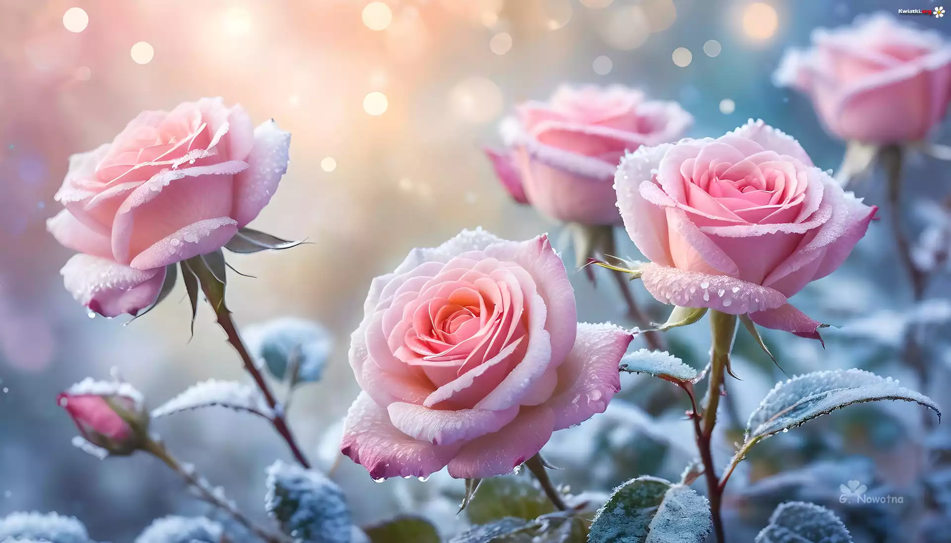 Kwiat Oszronione, Róże, Kwiaty, Grafika