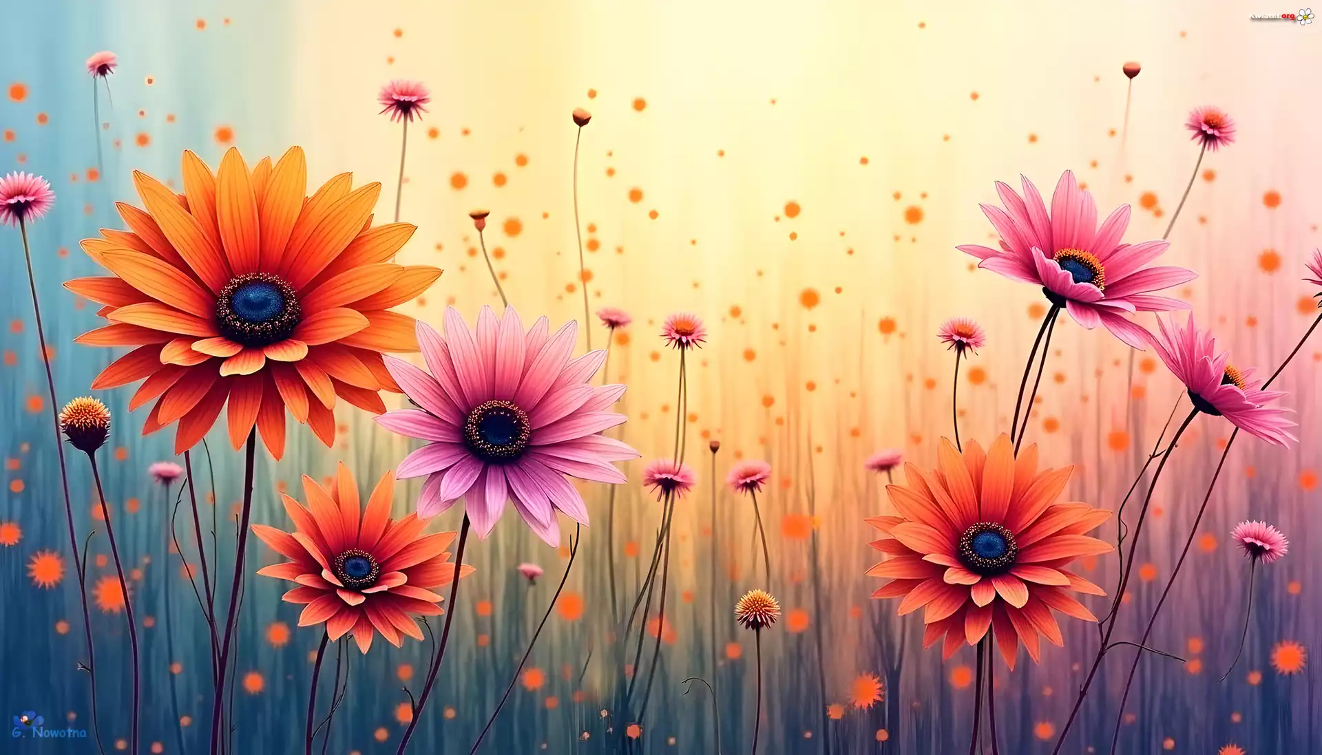 Pomarańczowe, Różowe, Kwiaty, Grafika - Zdjęcia