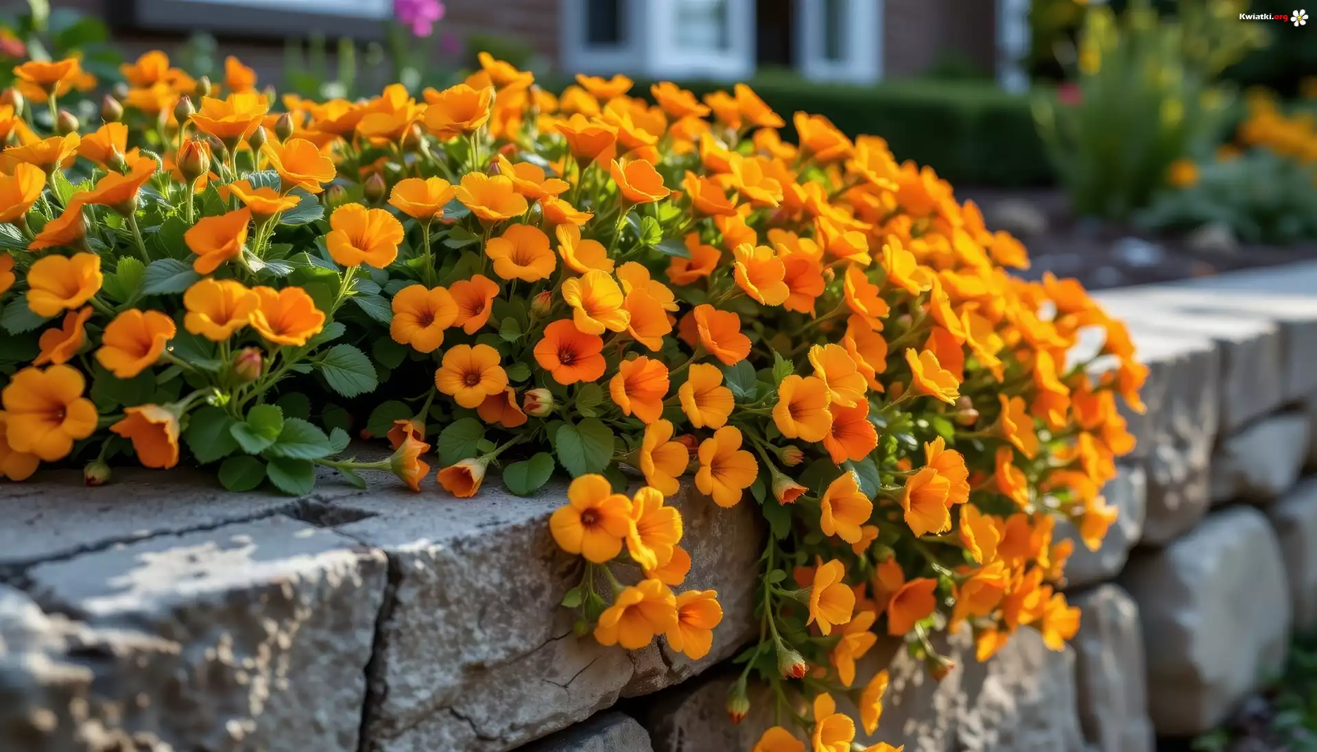 Pomarańczowe, Kwiaty, Mur, Grafika - Zdjęcia