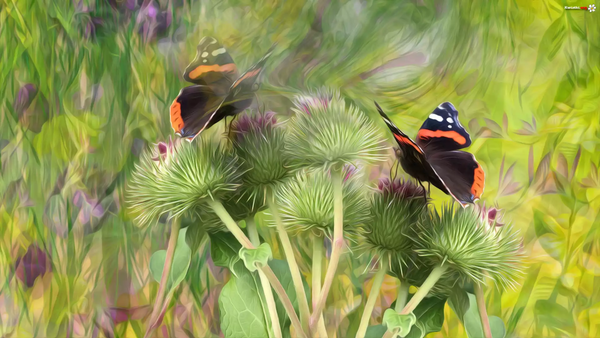 Grafika, Motyle, Roślina, Oset - Zdjęcia