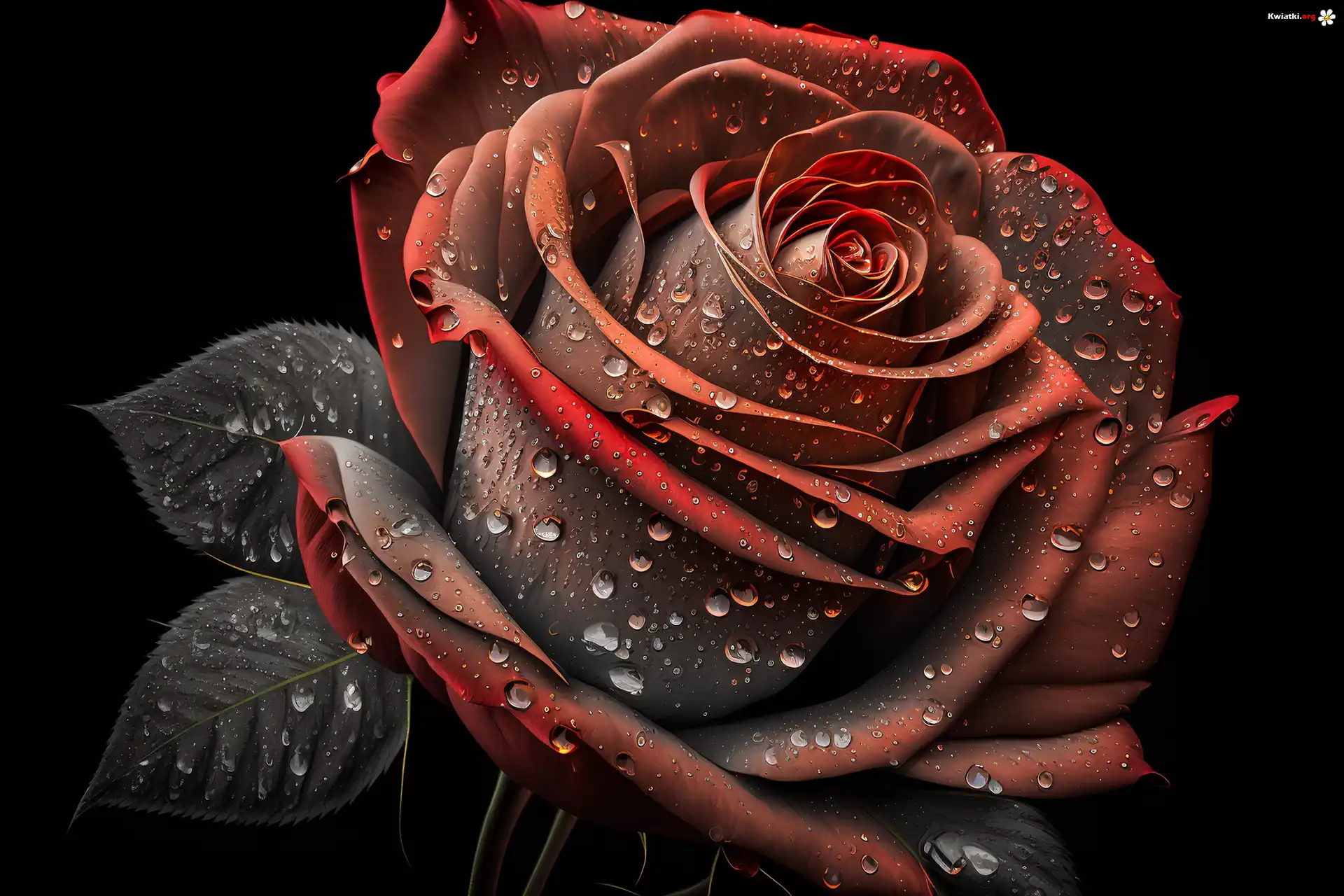 Roża, Kwiat, Krople, Grafika - Zdjęcia