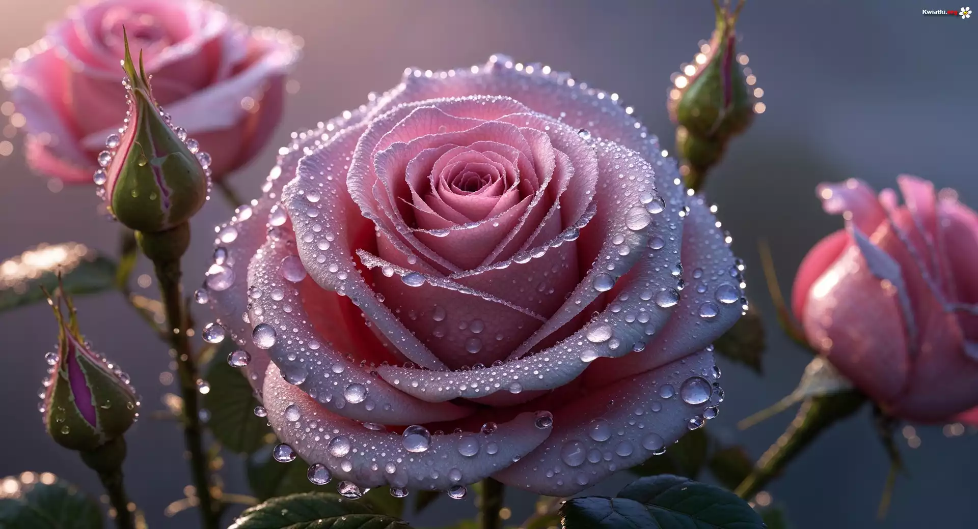 Kwiat Róża, Kwiaty, Krople, Grafika