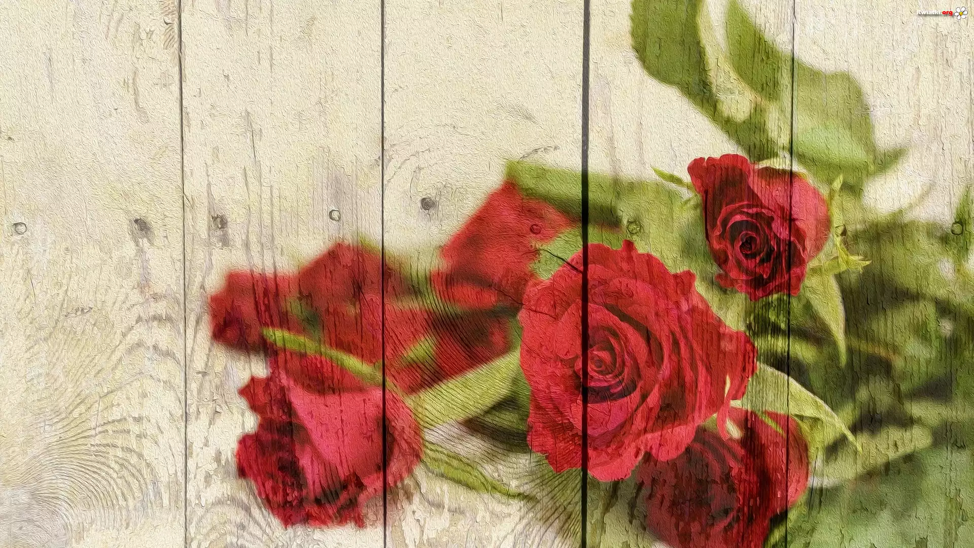 Grafika, Czerwone, Róże, Deski - Zdjęcia