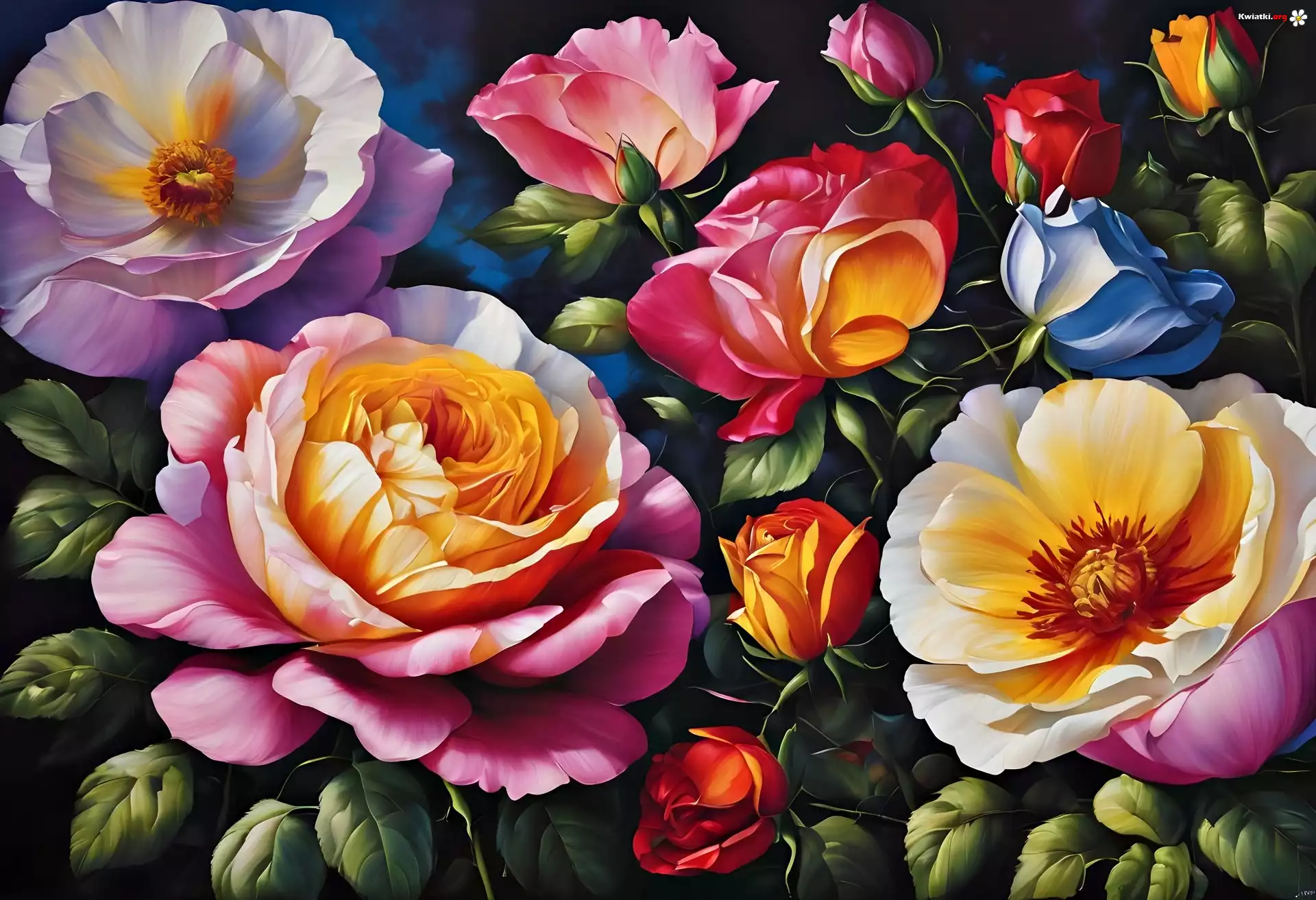 Róże, Kolorowe, Kwiaty, Grafika - Zdjęcia