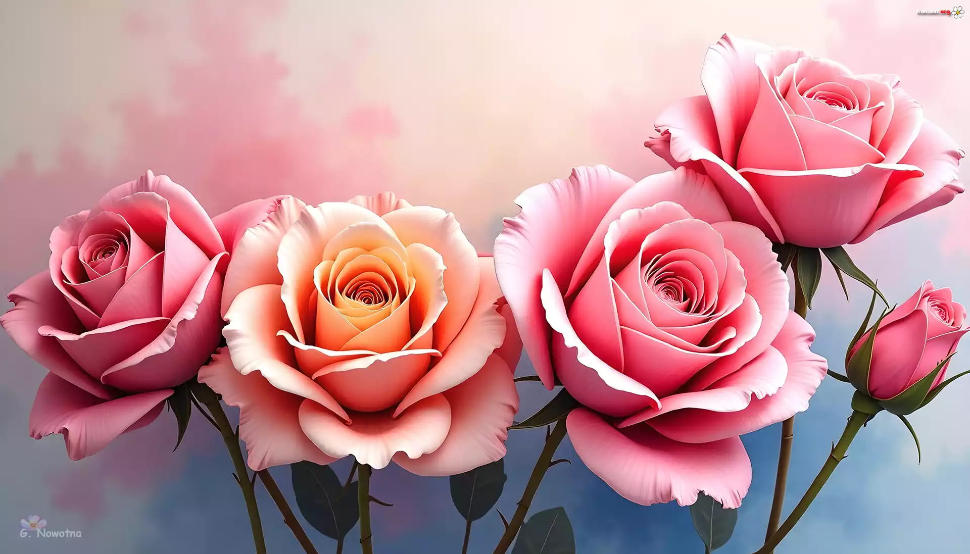 Róże, Kwiaty, Pąk, Grafika - Zdjęcia