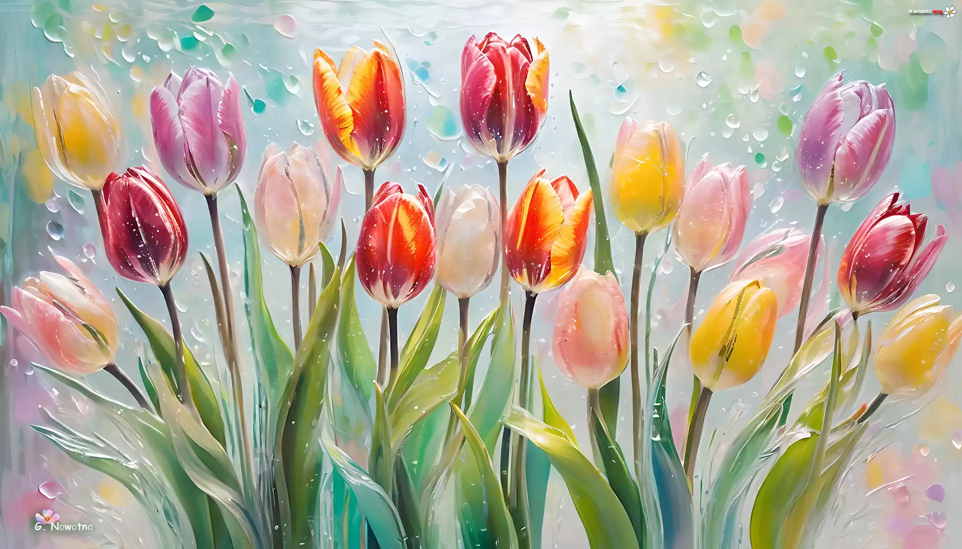 Różnokolorowe, Tulipany, Kwiaty, Grafika - Zdjęcia