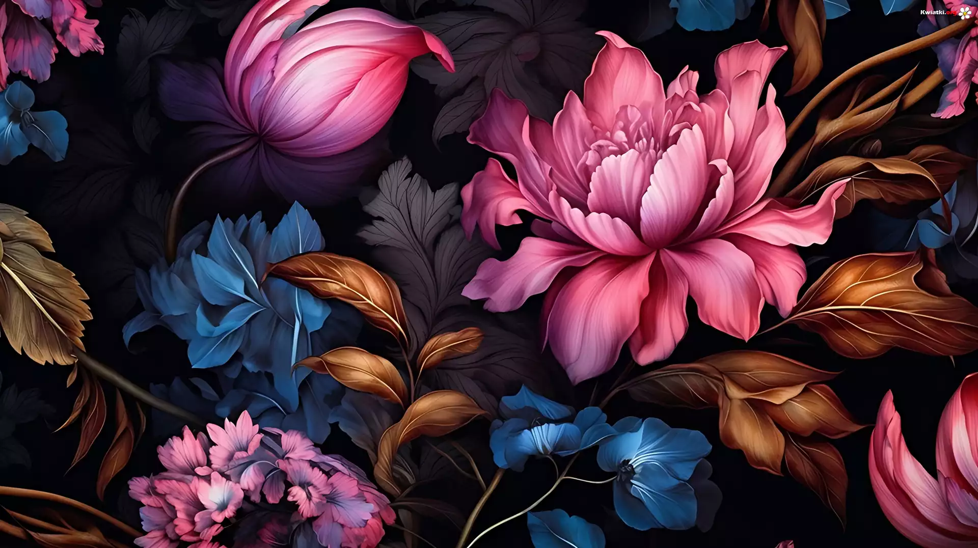 Różnokolorowe, Kwiaty, Listki, Grafika - Zdjęcia