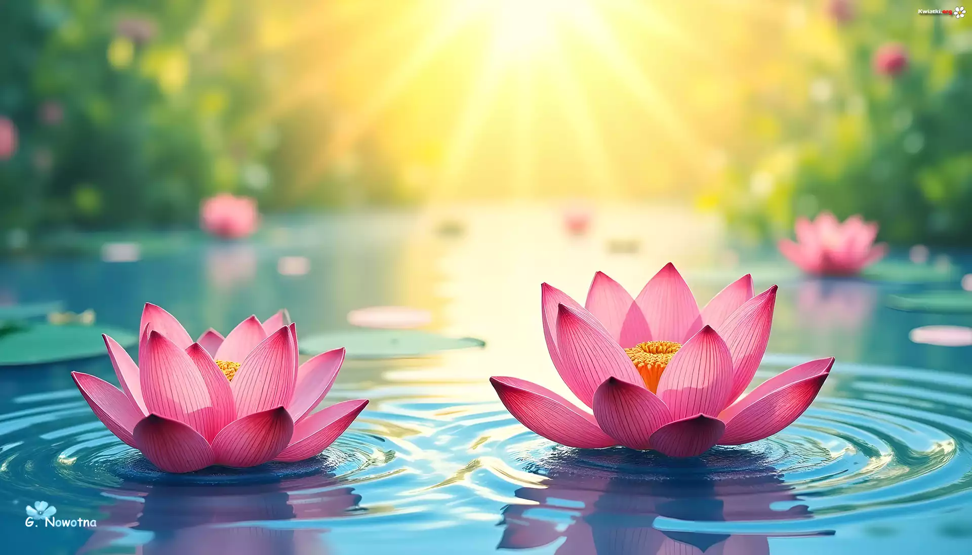 Różowe, Lotosy, Kwiaty, Grafika - Zdjęcia