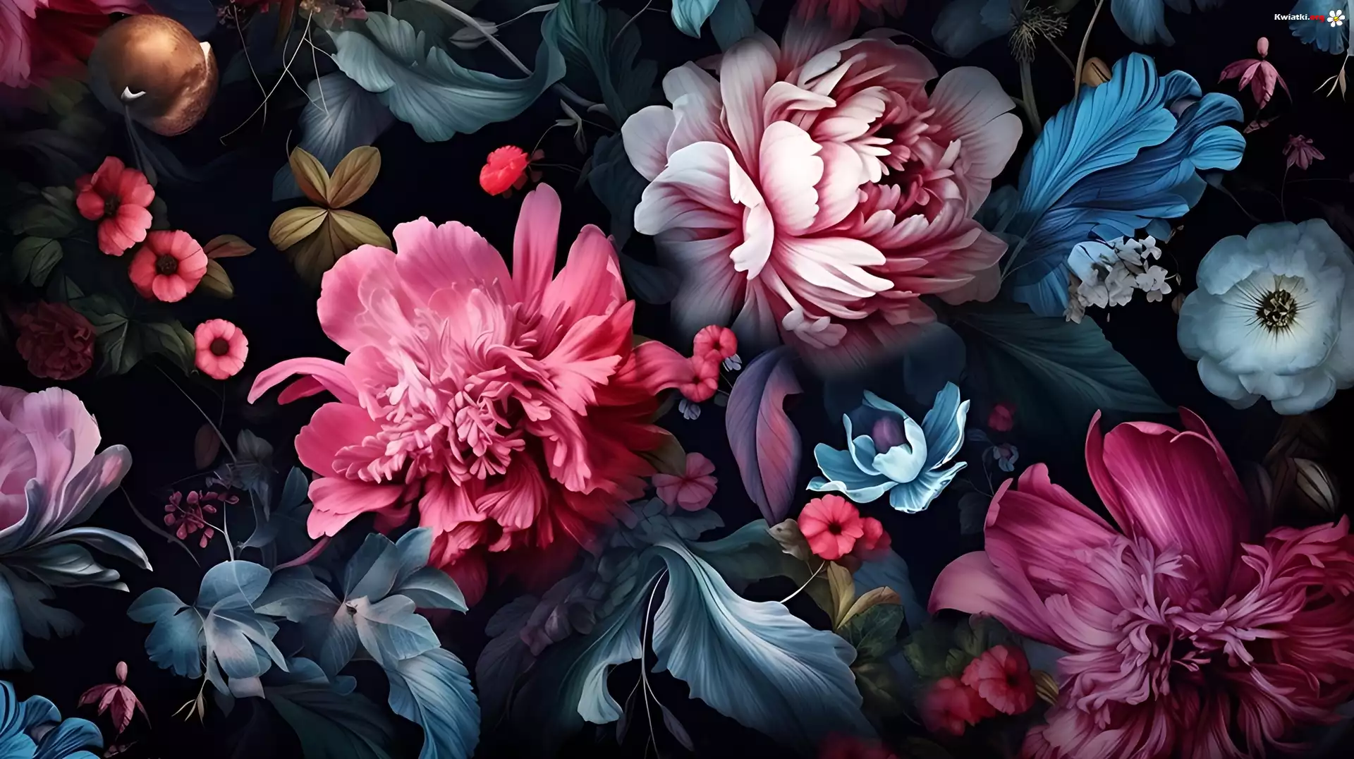 Różowe, Niebieskie, Kwiaty, Grafika - Zdjęcia