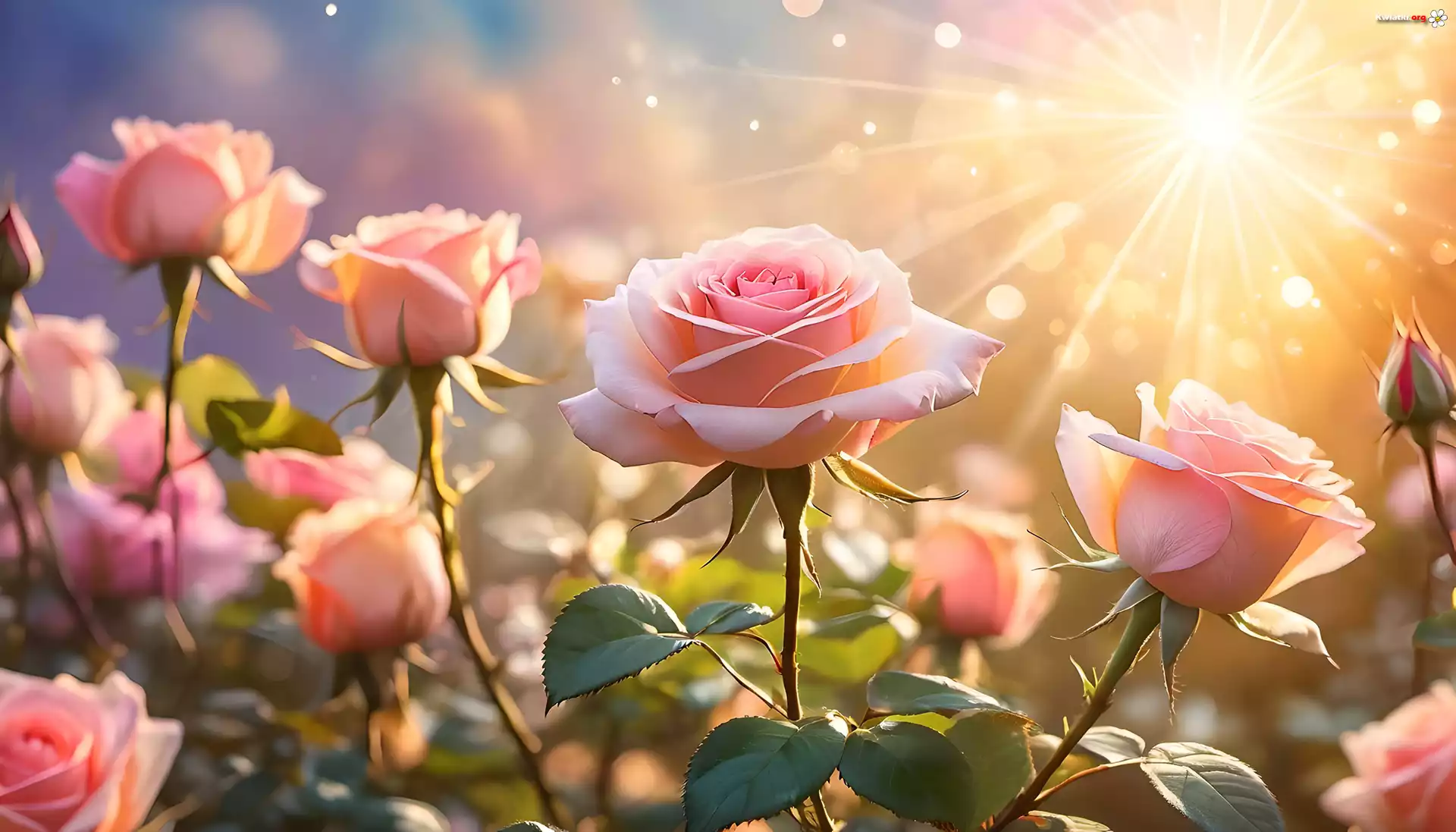 Różowe, Róże, Kwiaty, Grafika - Zdjęcia