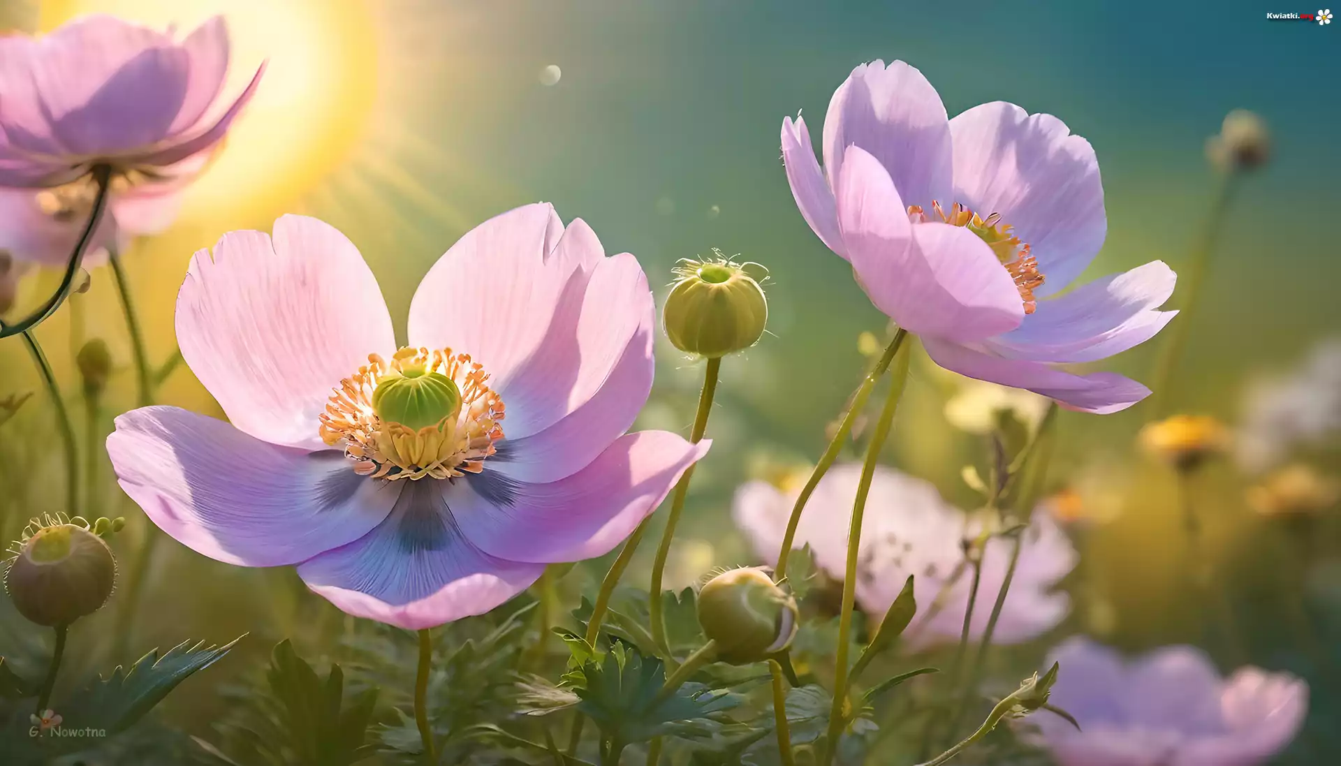 Różowe, Zawilce, Kwiaty, Grafika - Zdjęcia
