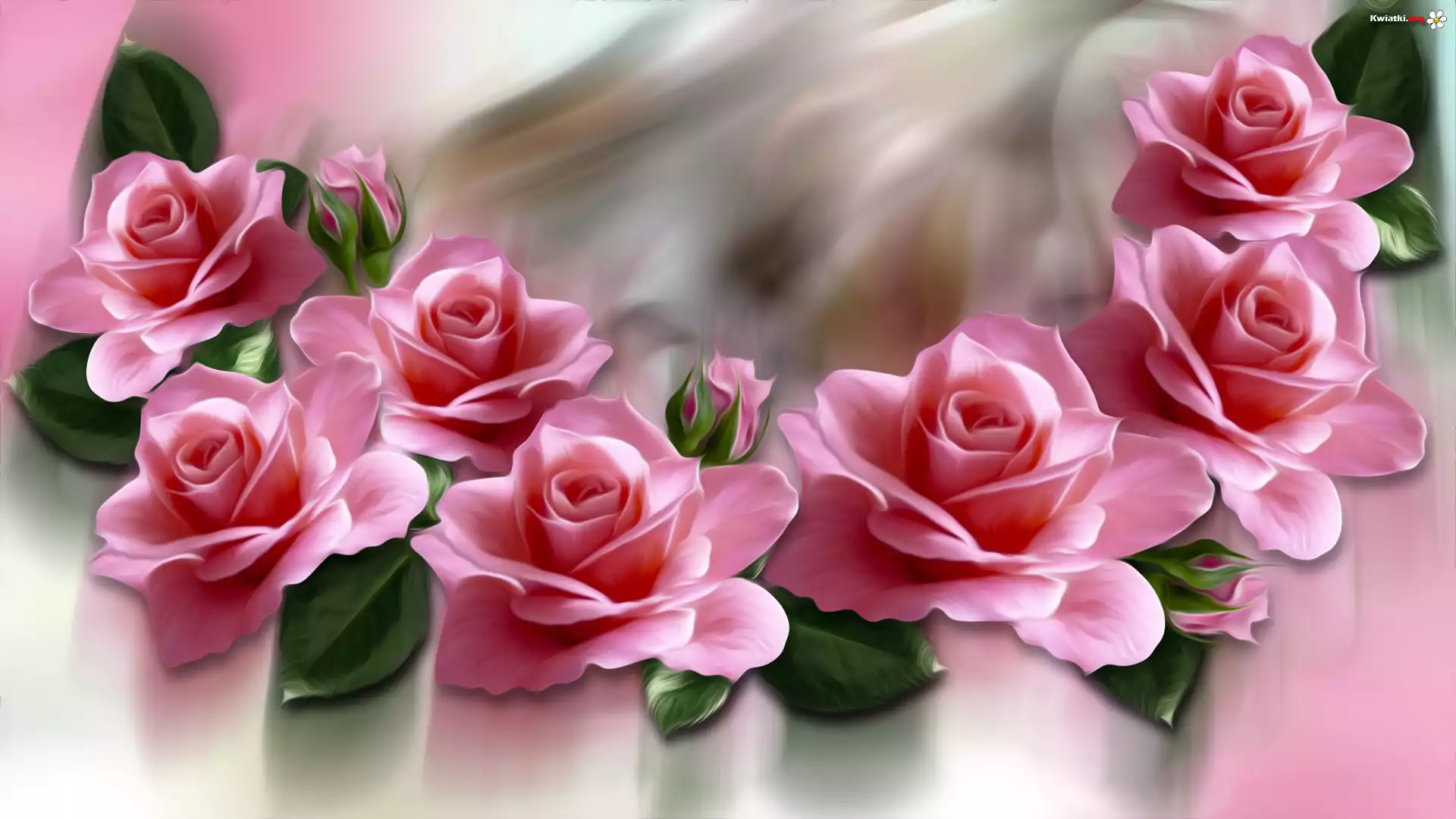 Grafika, Kwiaty, Róże, Różowe, Listki - Zdjęcia