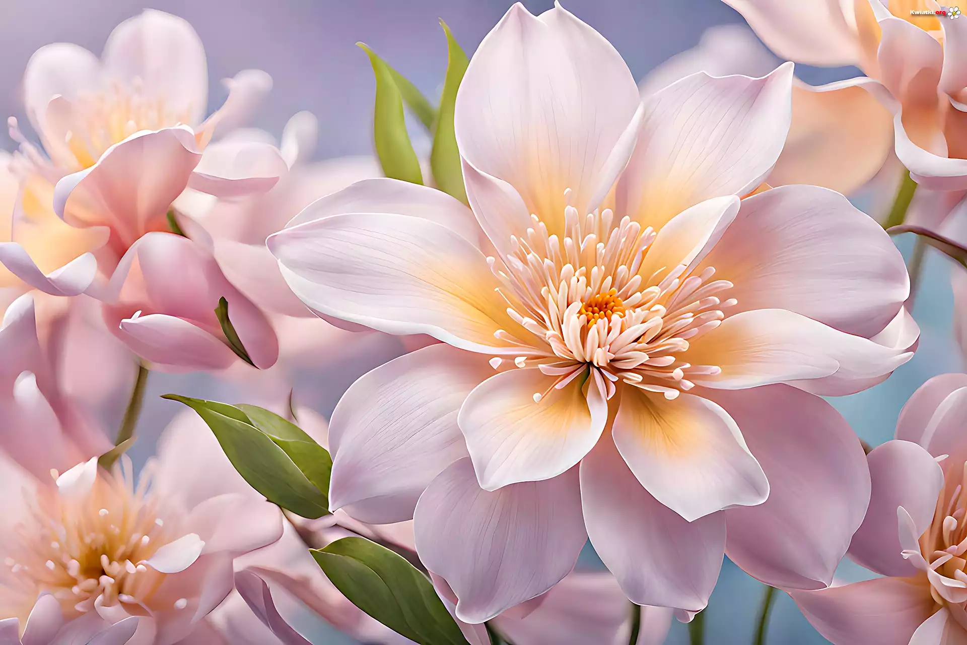 Różowe, Kwiaty, Zbliżenie, Grafika - Zdjęcia