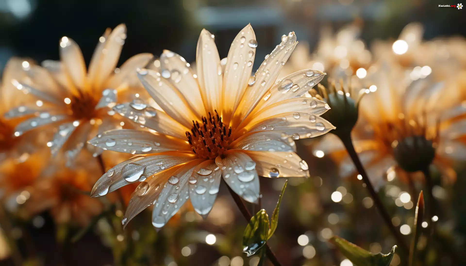 Kwiat Rozświetlony, Kwiat, Krople, Grafika