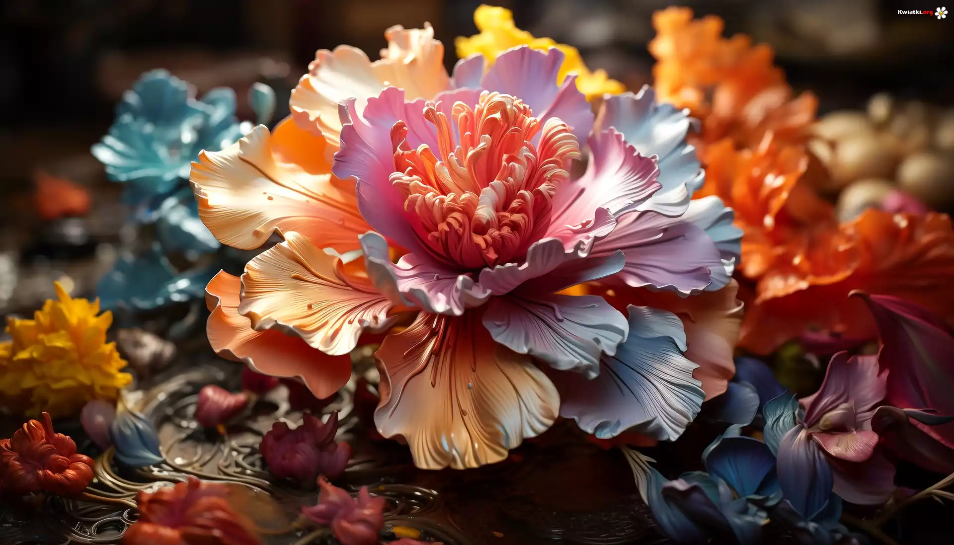Rozwinięty, Kolorowy, Kwiat, Grafika - Zdjęcia