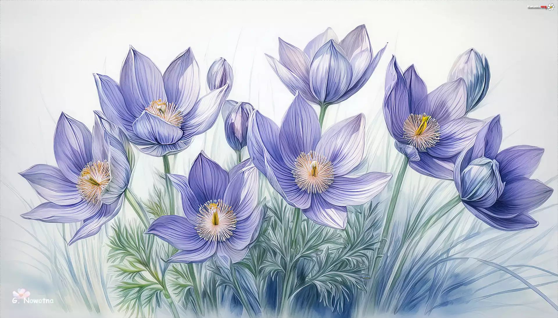 Sasanki, Kwiaty, Fioletowe, Grafika - Zdjęcia