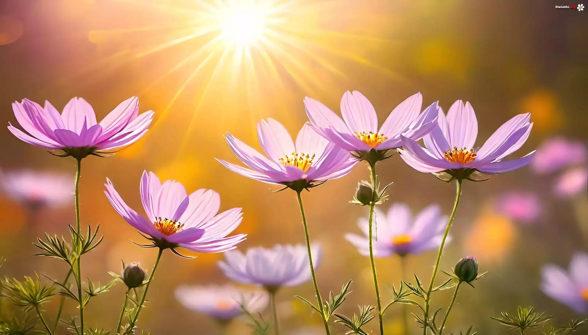 Różowe, Kwiaty, Kosmea, Grafika, Promienie słońca - Zdjęcia