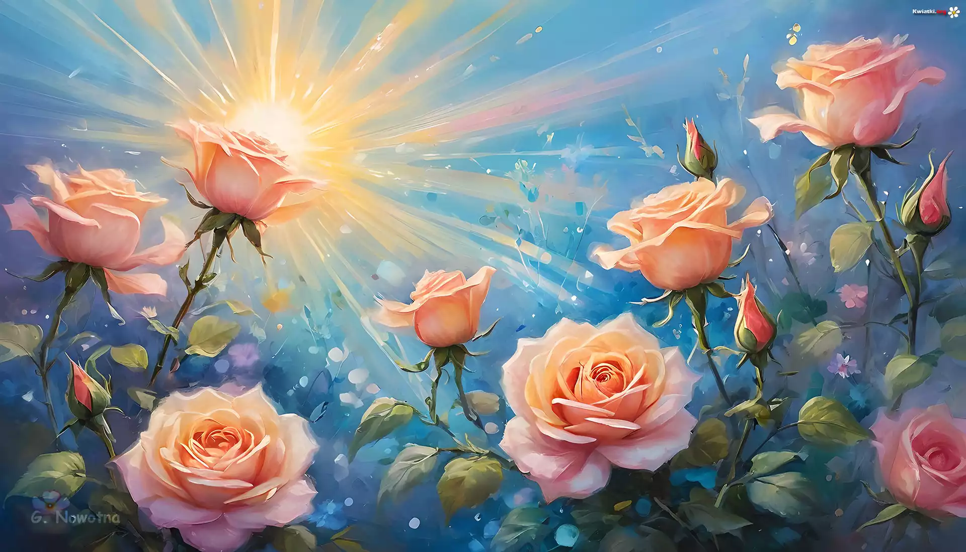 Słońce, Róże, Kwiaty, Grafika - Zdjęcia