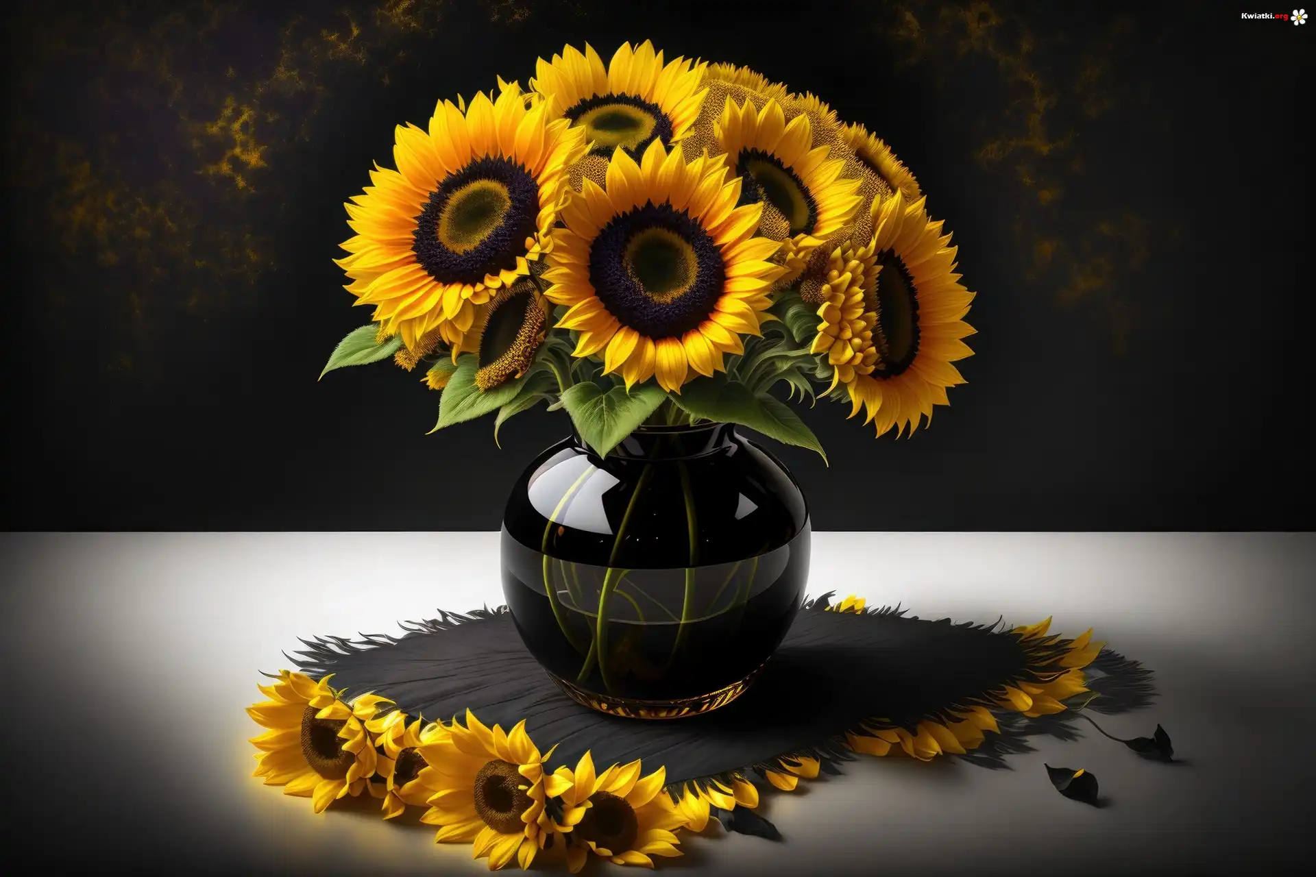 Słoneczniki, Wazon, Serwetka, Grafika - Zdjęcia