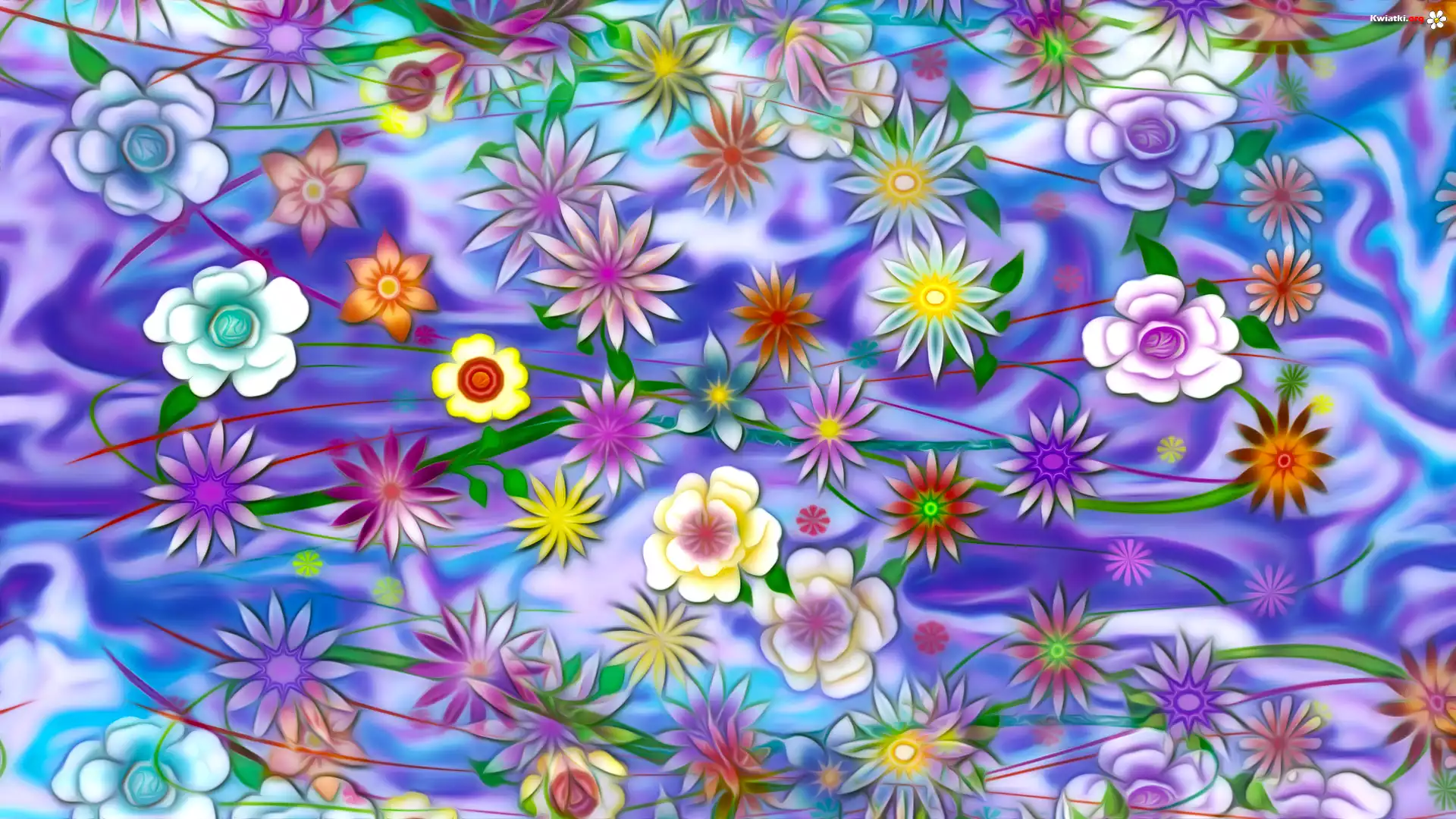 Grafika, Kolorowe tło, Kwiaty - Zdjęcia