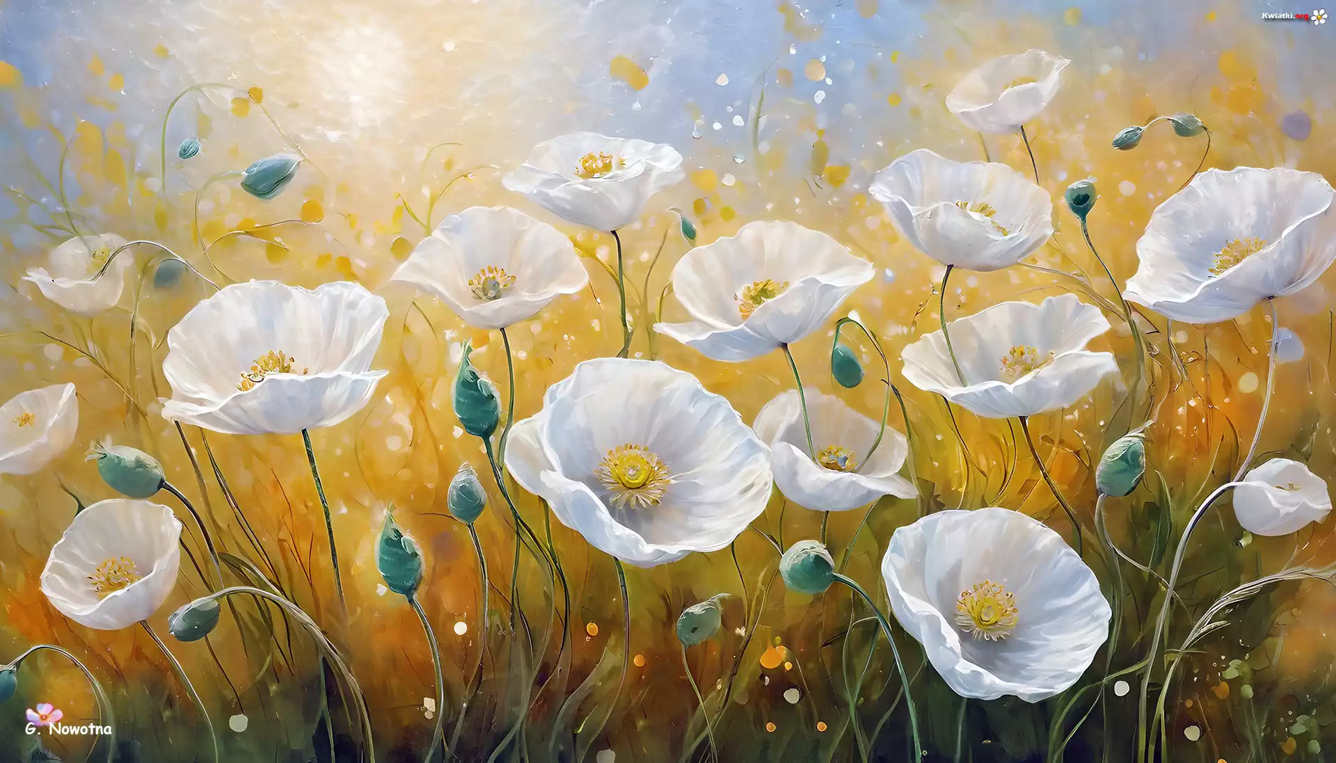 Białe, Maki, Kwiaty, Grafika, Żółte, Tło - Zdjęcia