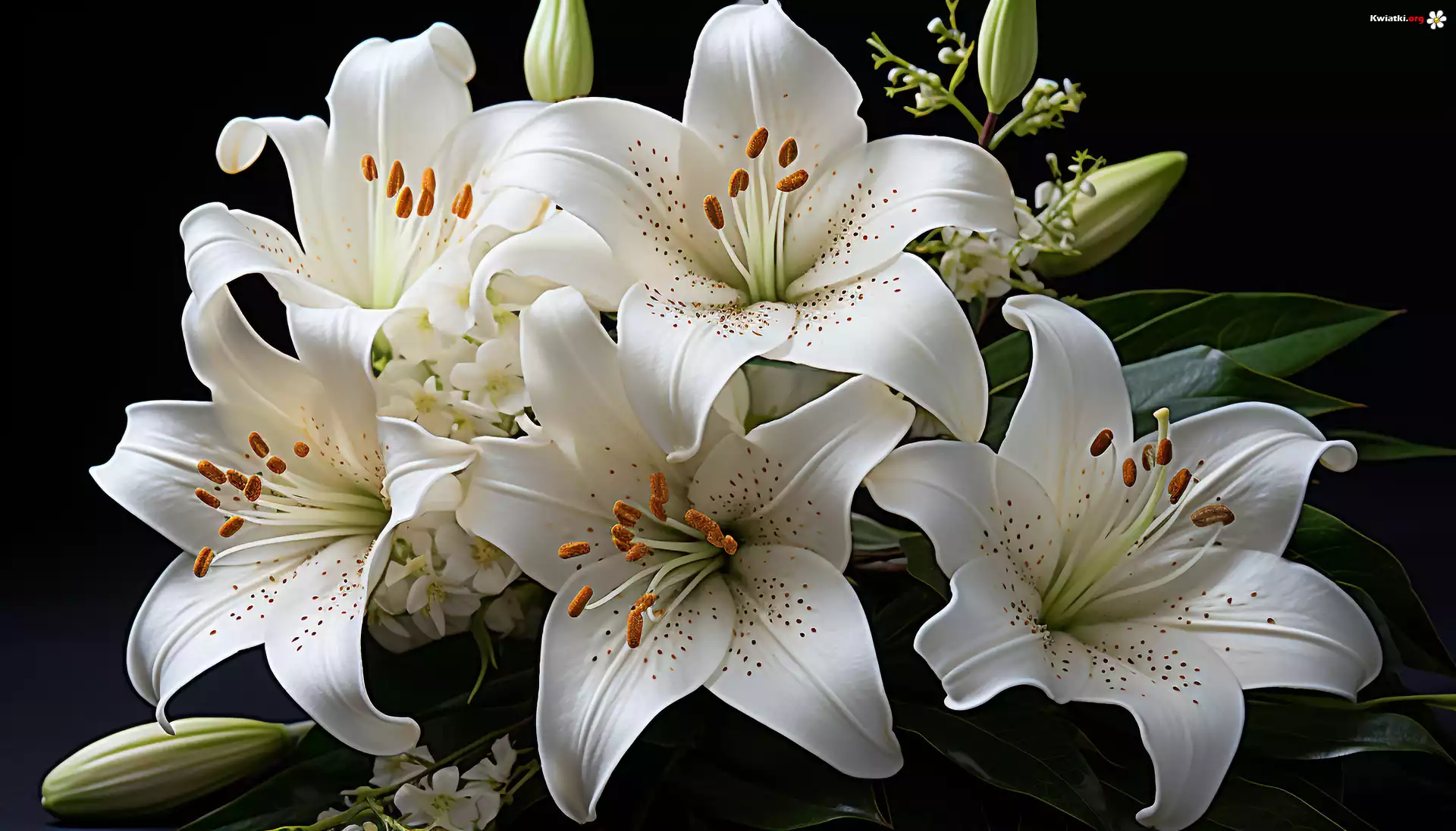 Kwiat Kwiaty, Białe, Lilie, Grafika, Czarne tło
