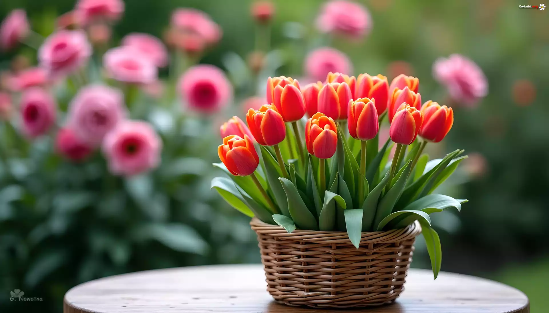 Tulipany, Kwiaty, Koszyk, Grafika - Zdjęcia