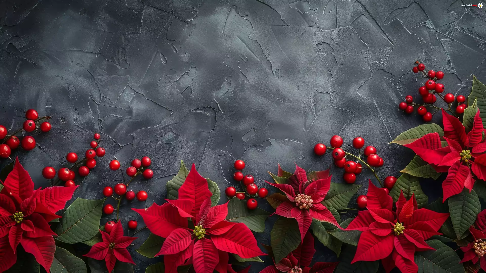 Kwiaty, Gwiazda betlejemska, Jagody, Czerwone - Zdjęcia