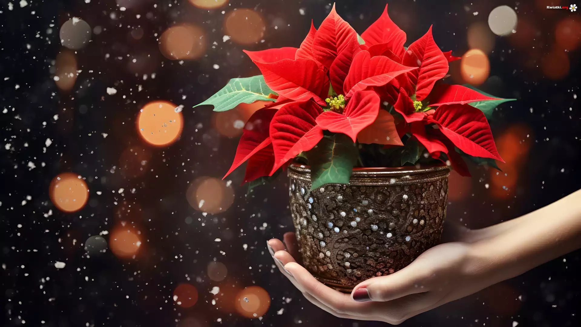 Kwiat Kwiat, Gwiazda betlejemska, Doniczka, Dłoń