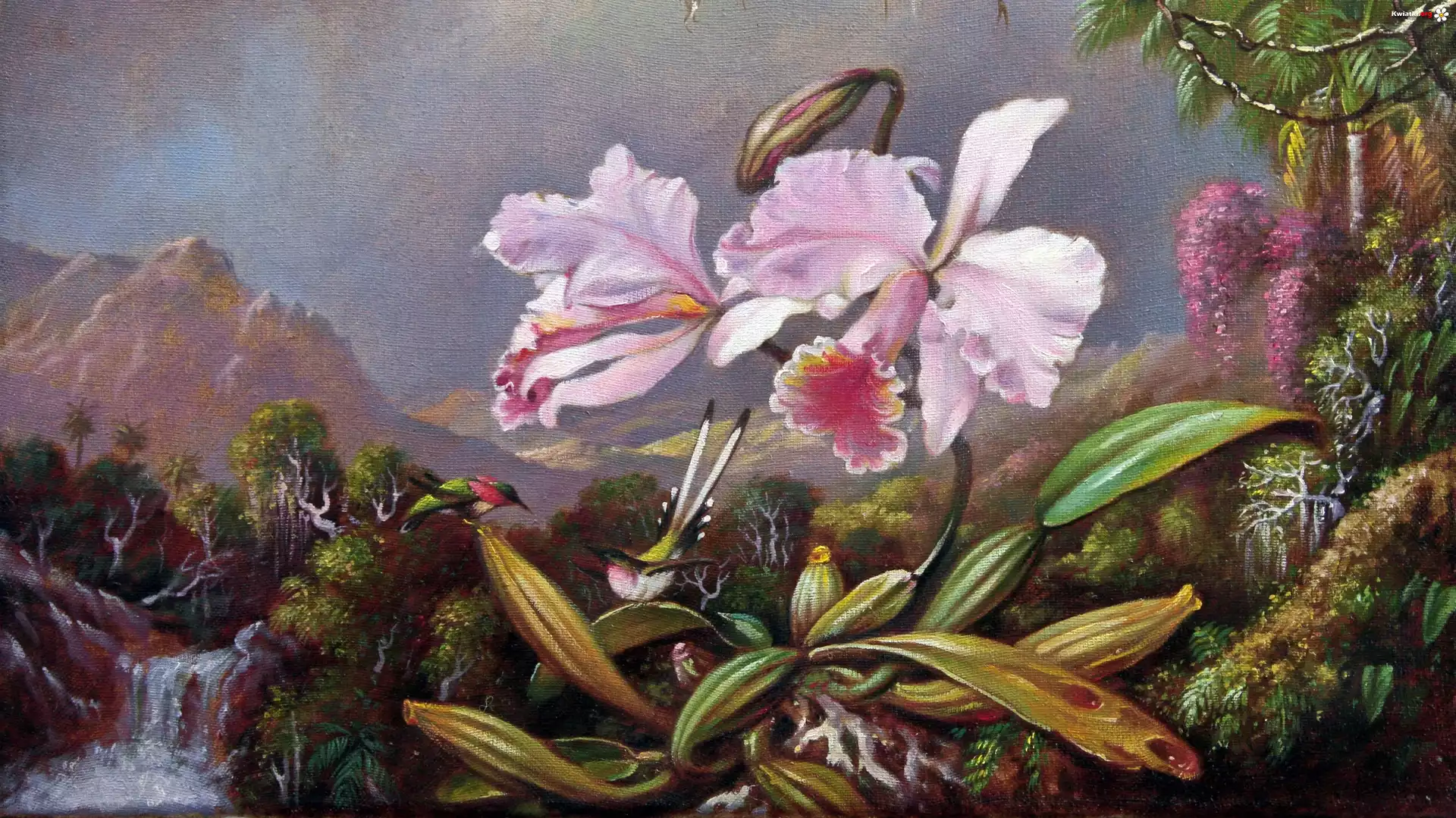 Kwiat Malarstwo, Obraz, Martin Johnson Heade, Storczyk, Koliber