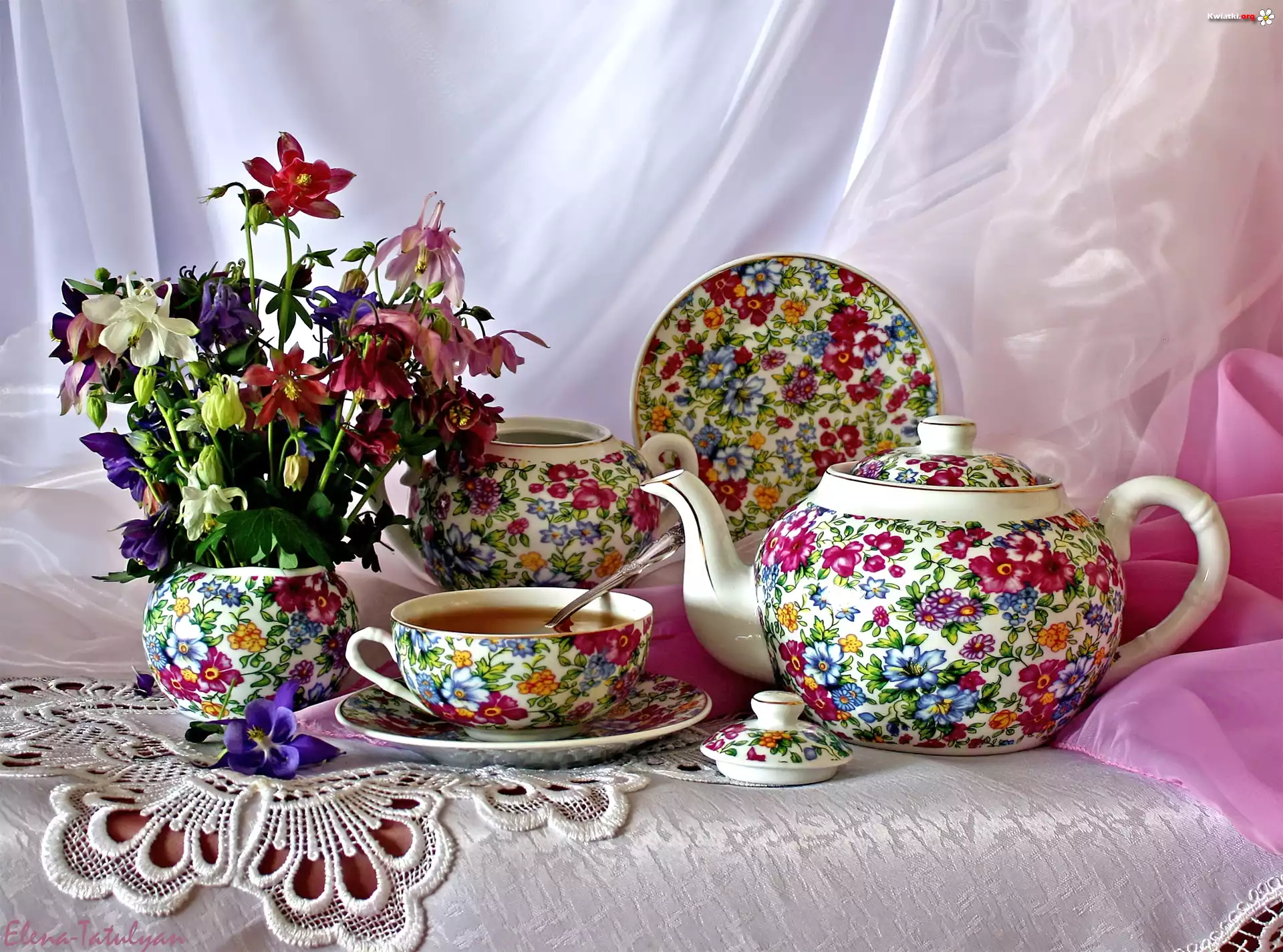 Zastawa, Herbata, Kwiaty - Zdjęcia