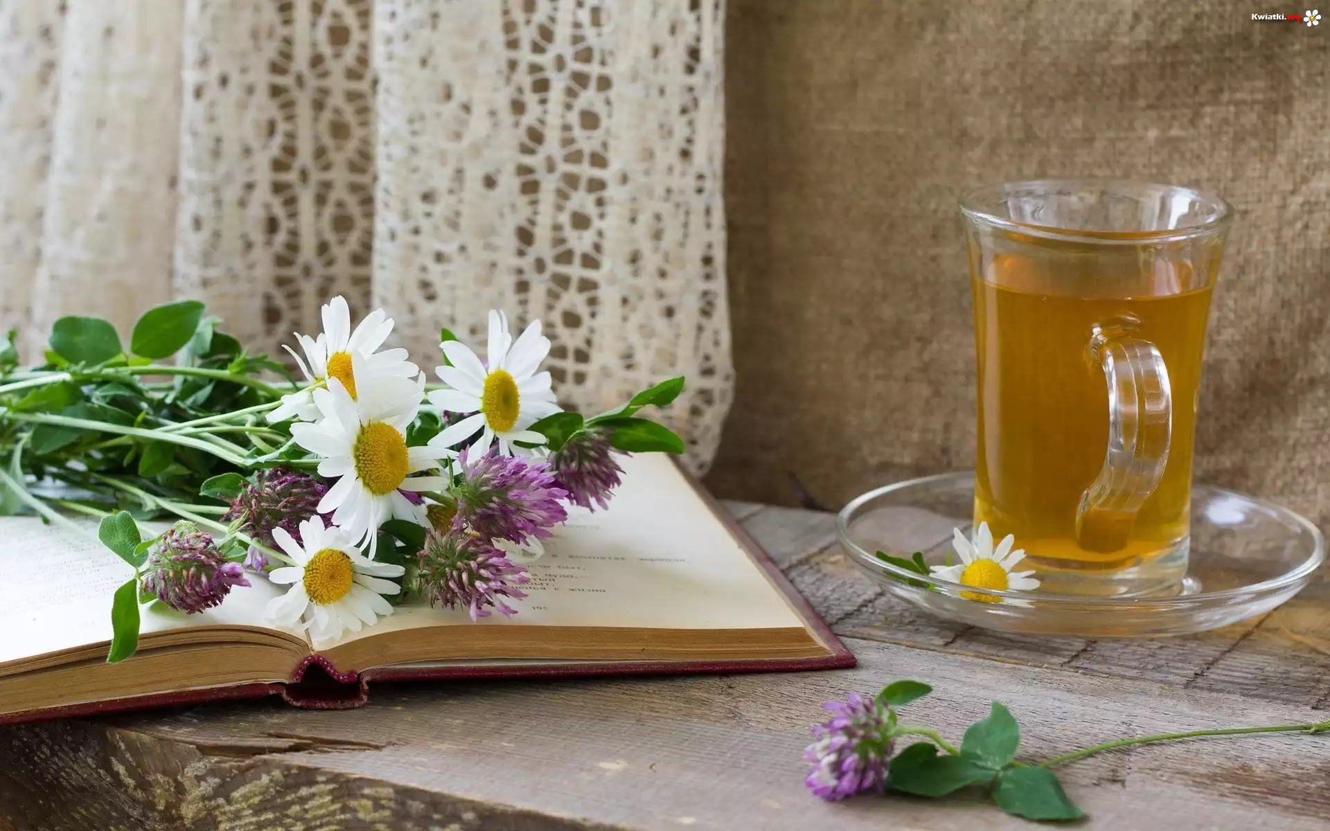 Kwiat Filiżanka, Herbaty, Bukiet, Polnych, Kwiatów, Książka, Okno