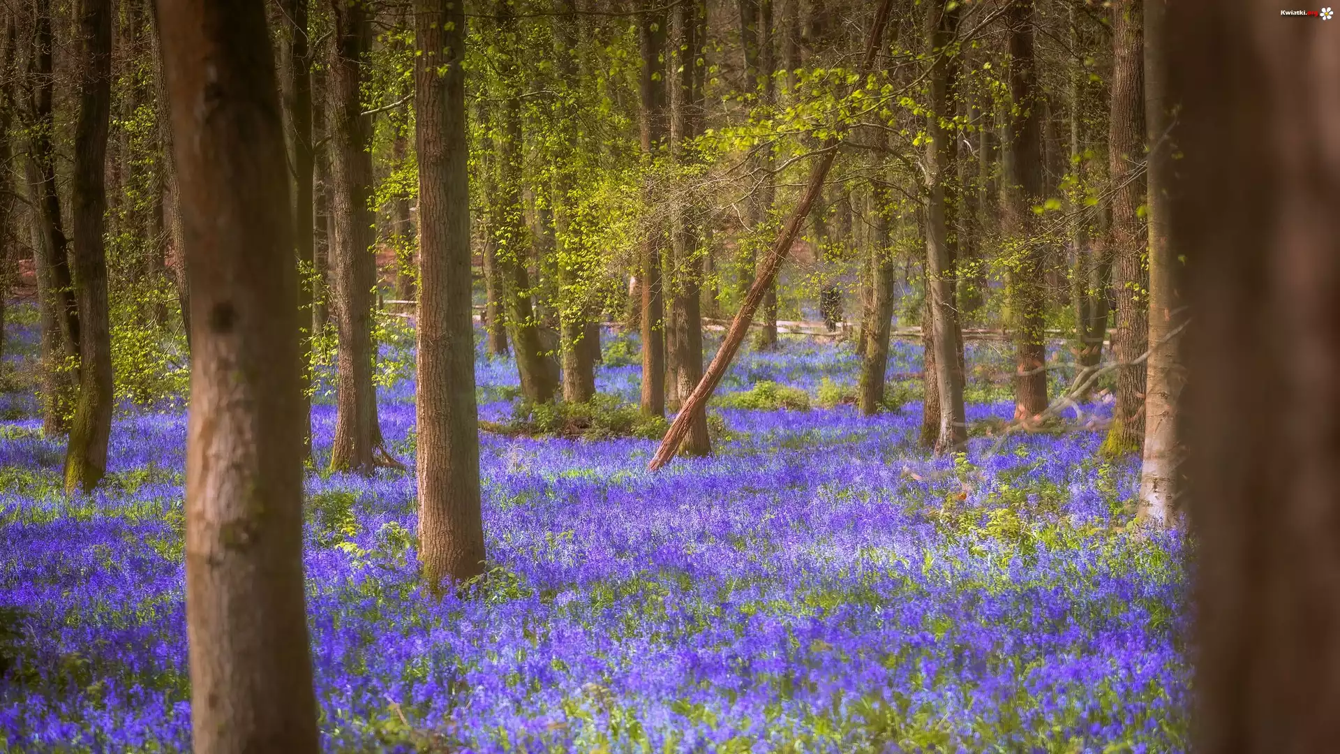 Kwiaty, Hiacyntowce, Drzewa, Las, Pnie - Zdjęcia