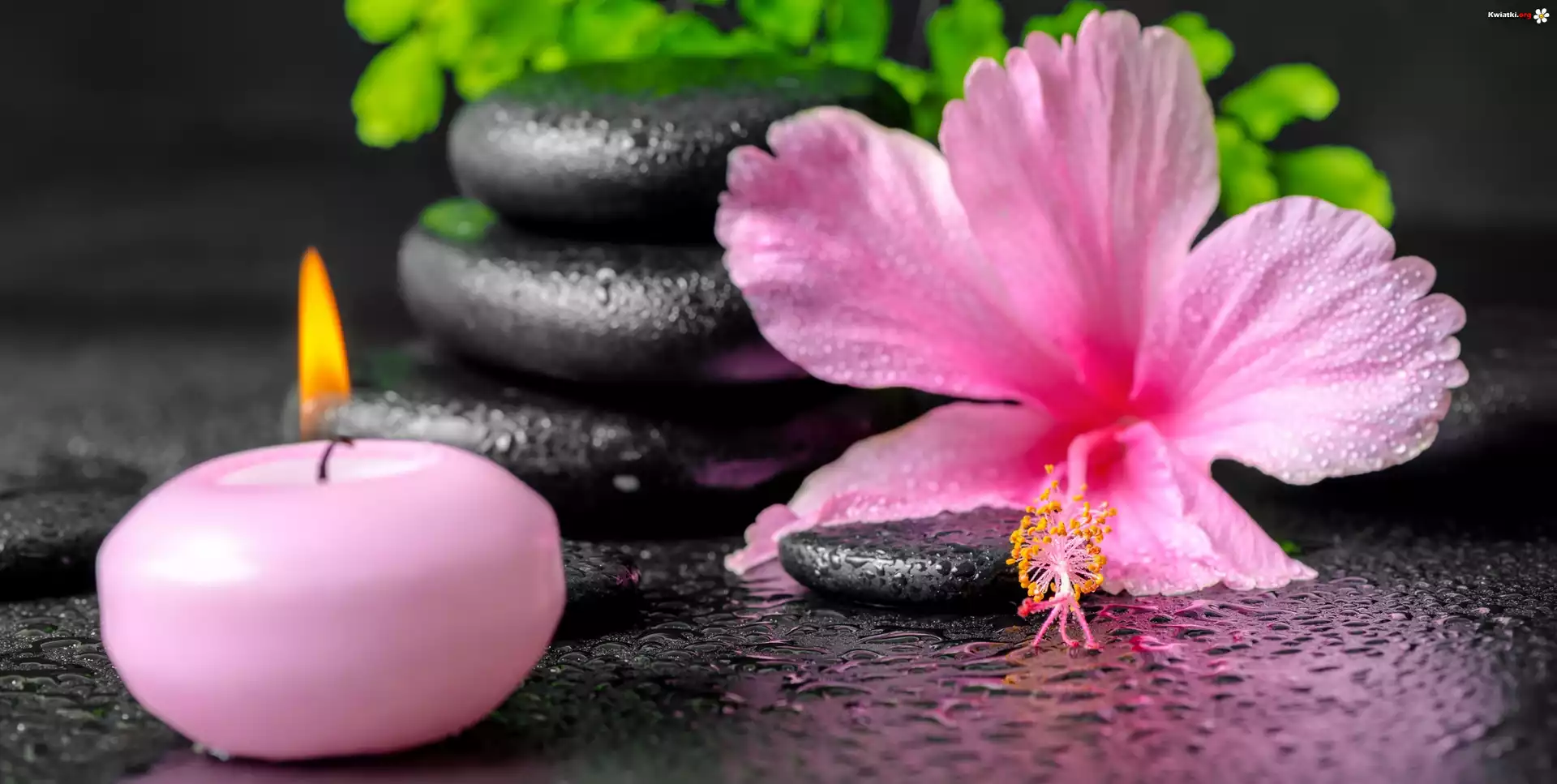 Świeca, Kamienie, Kwiat, Hibiskus, SPA - Zdjęcia