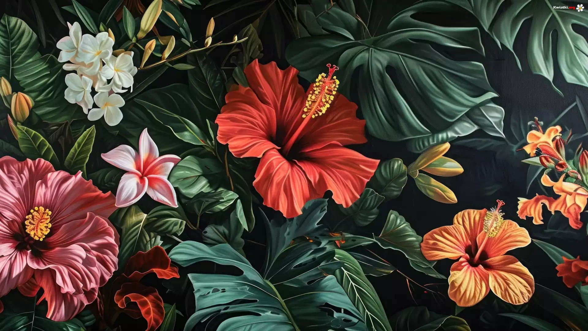 Grafika, Kwiaty, Liście, Hibiskusy - Zdjęcia