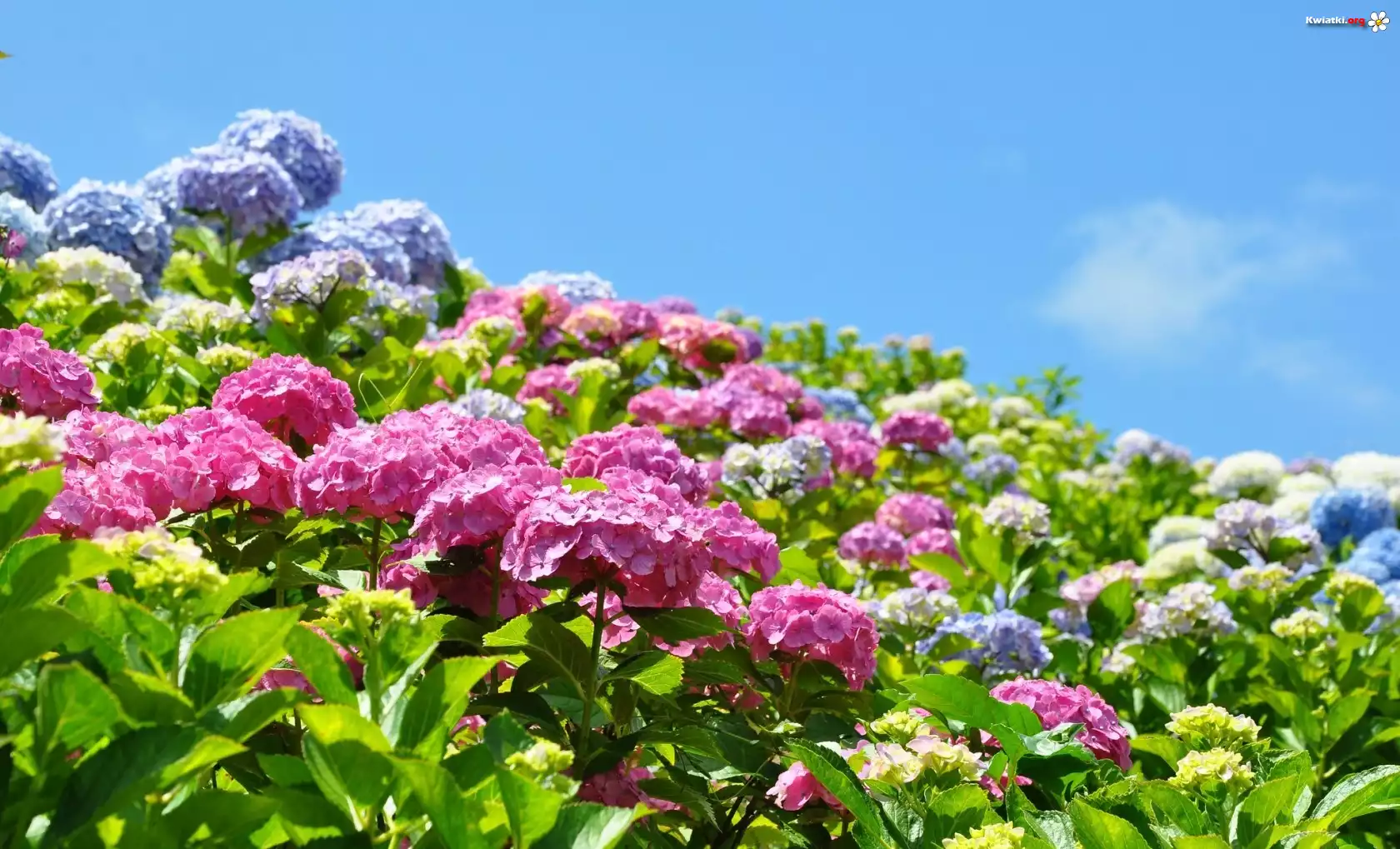 Kwiaty, Hortensje, Niebo - Zdjęcia