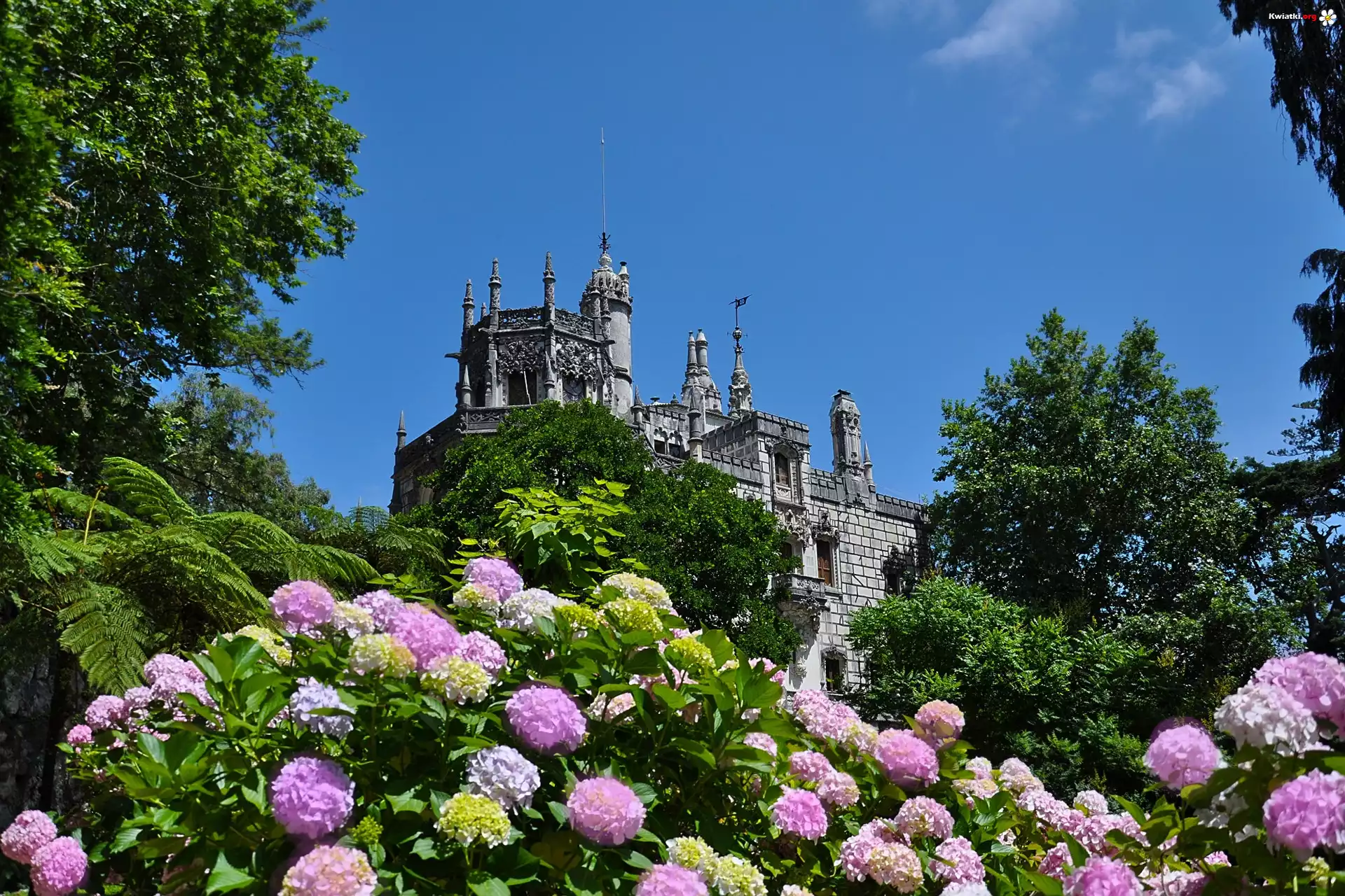 Pałac, Hortensje, Drzewa - Zdjęcia