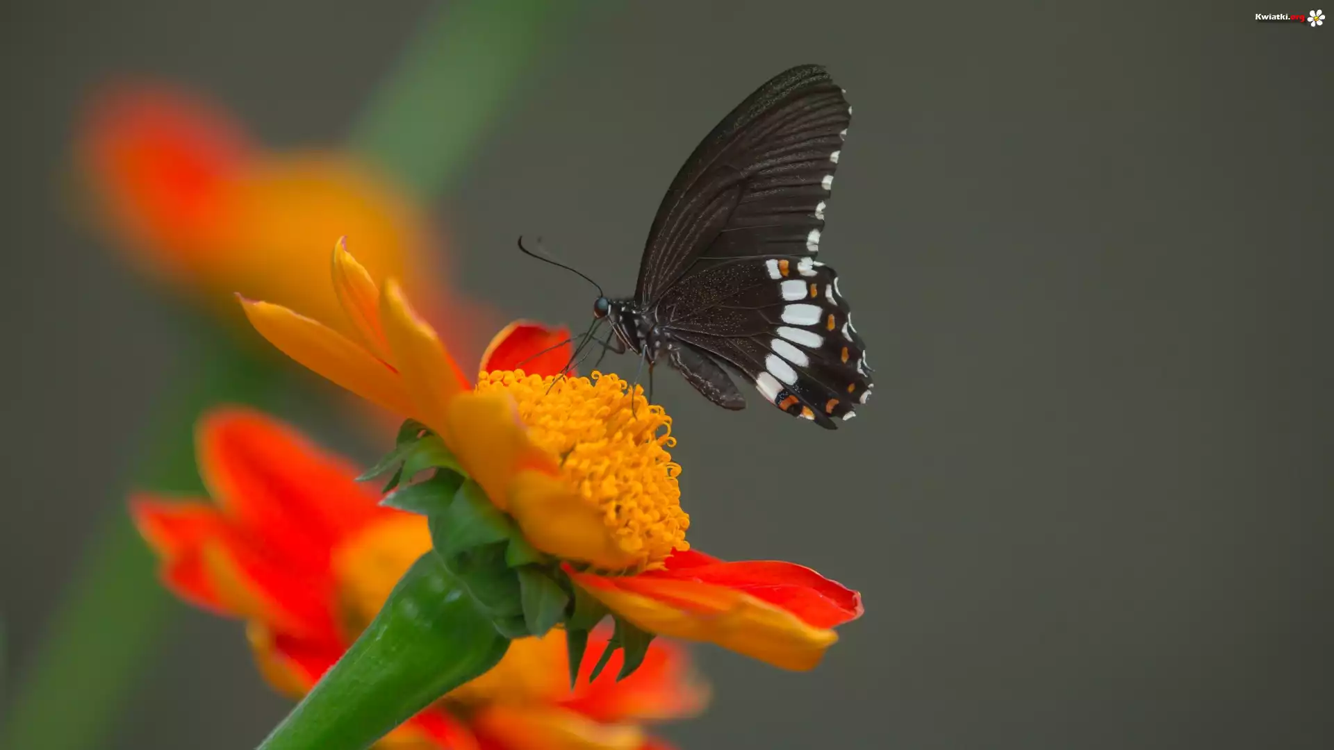 Czarny, Motyl, Papilio polytes romulus - Indian Common Mormon, Pomarańczowy, Kwiat, Popielate, Tło - Zdjęcia |