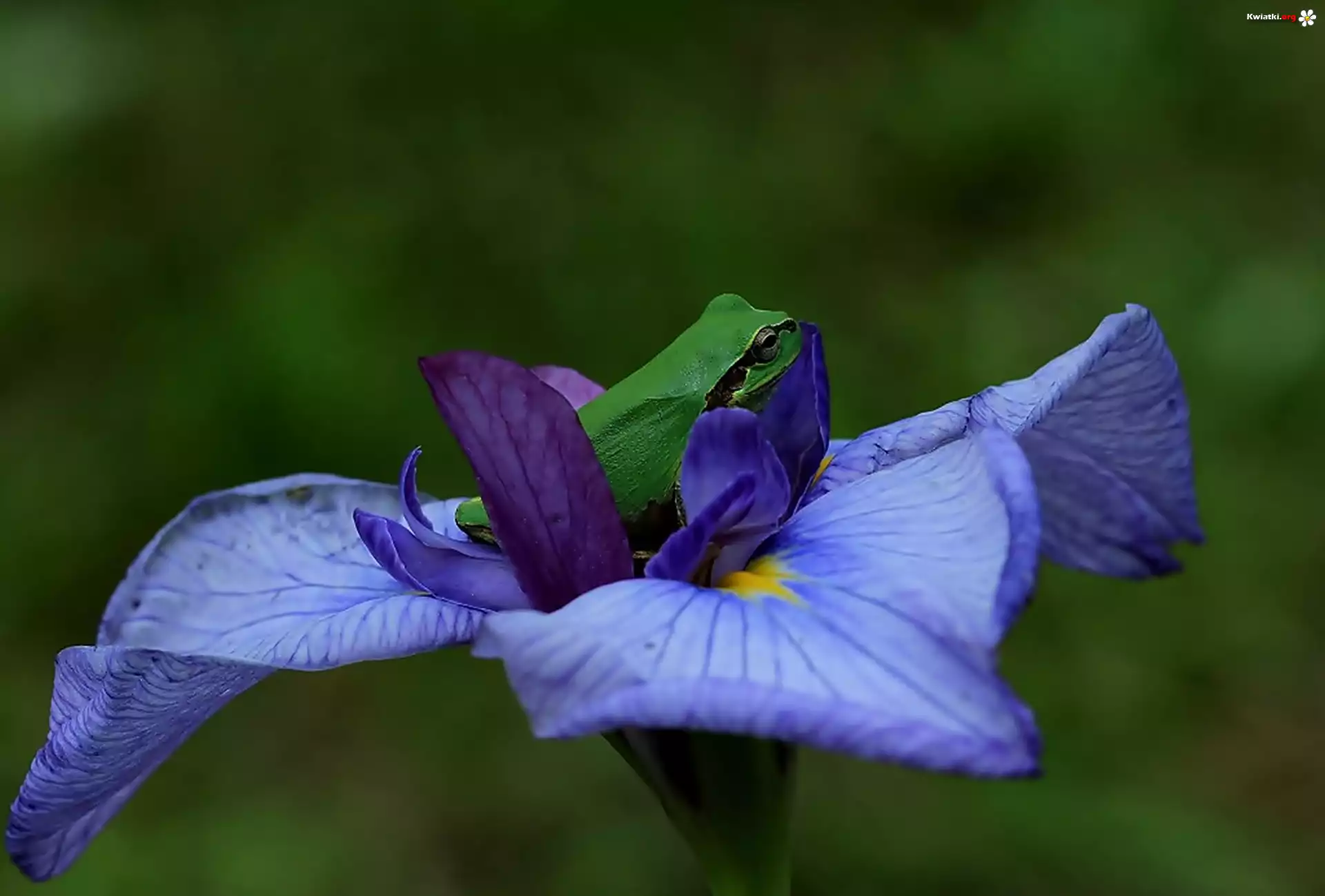 Żaba, Kwiat, Irys, Niebieski - Zdjęcia