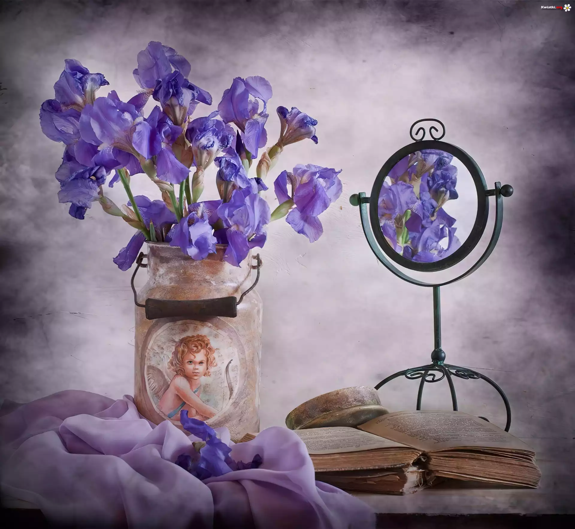 Kwiat Wazon, Irysy, Lusterko