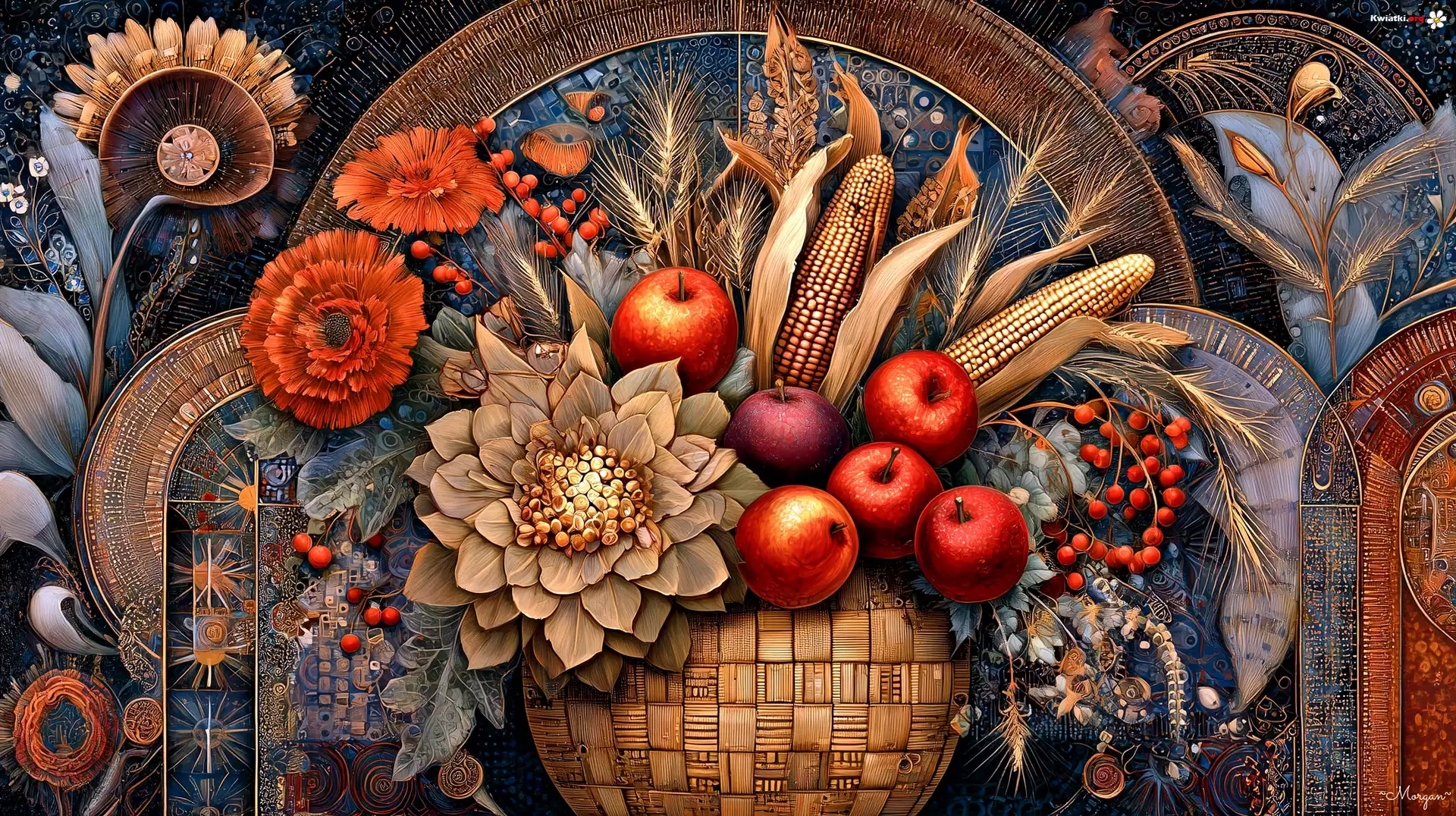 Kwiat Kosz, Jabłka, Kwiaty, Grafika AI
