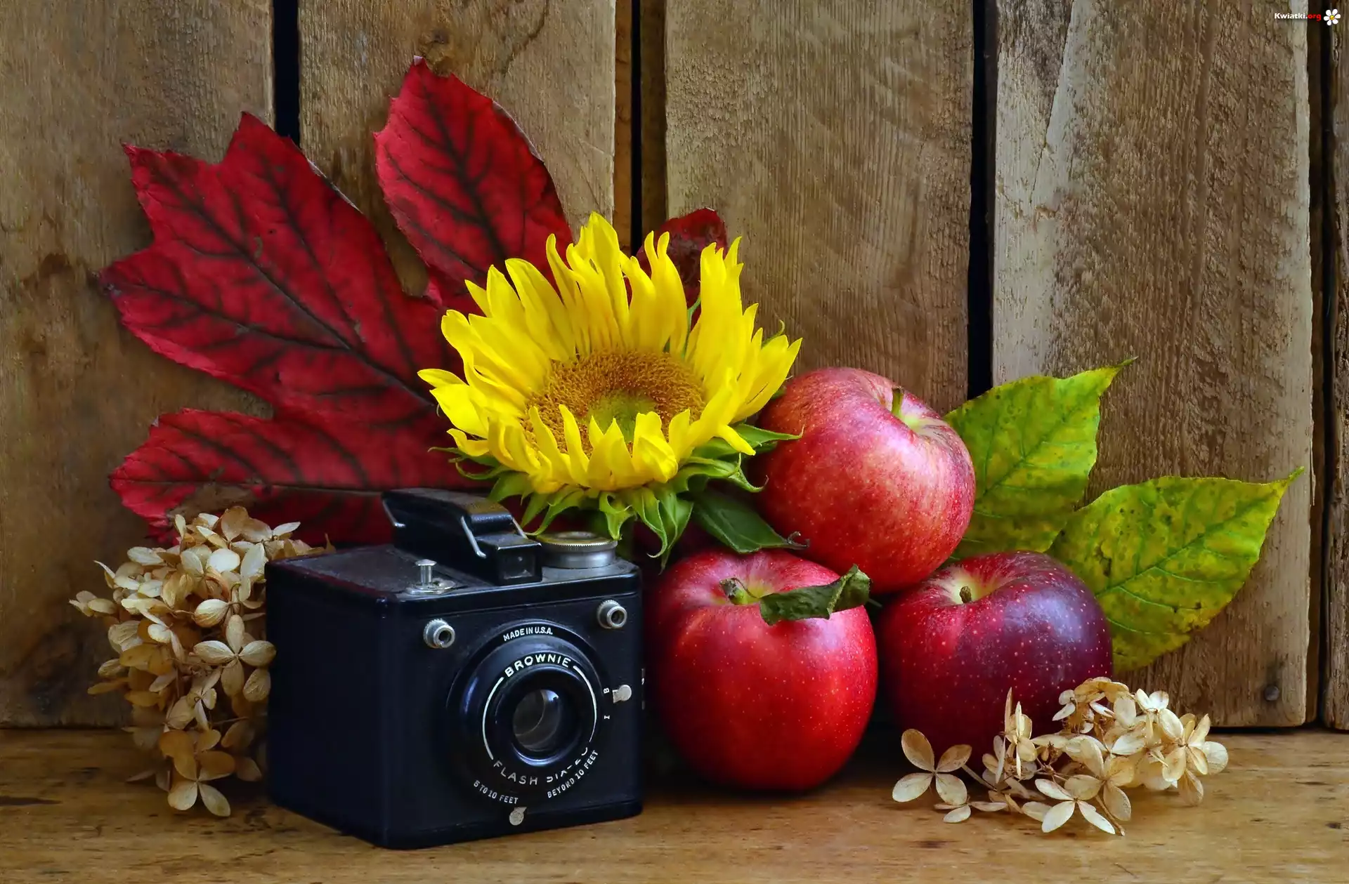 Słonecznik, Jabłka, Aparat - Zdjęcia