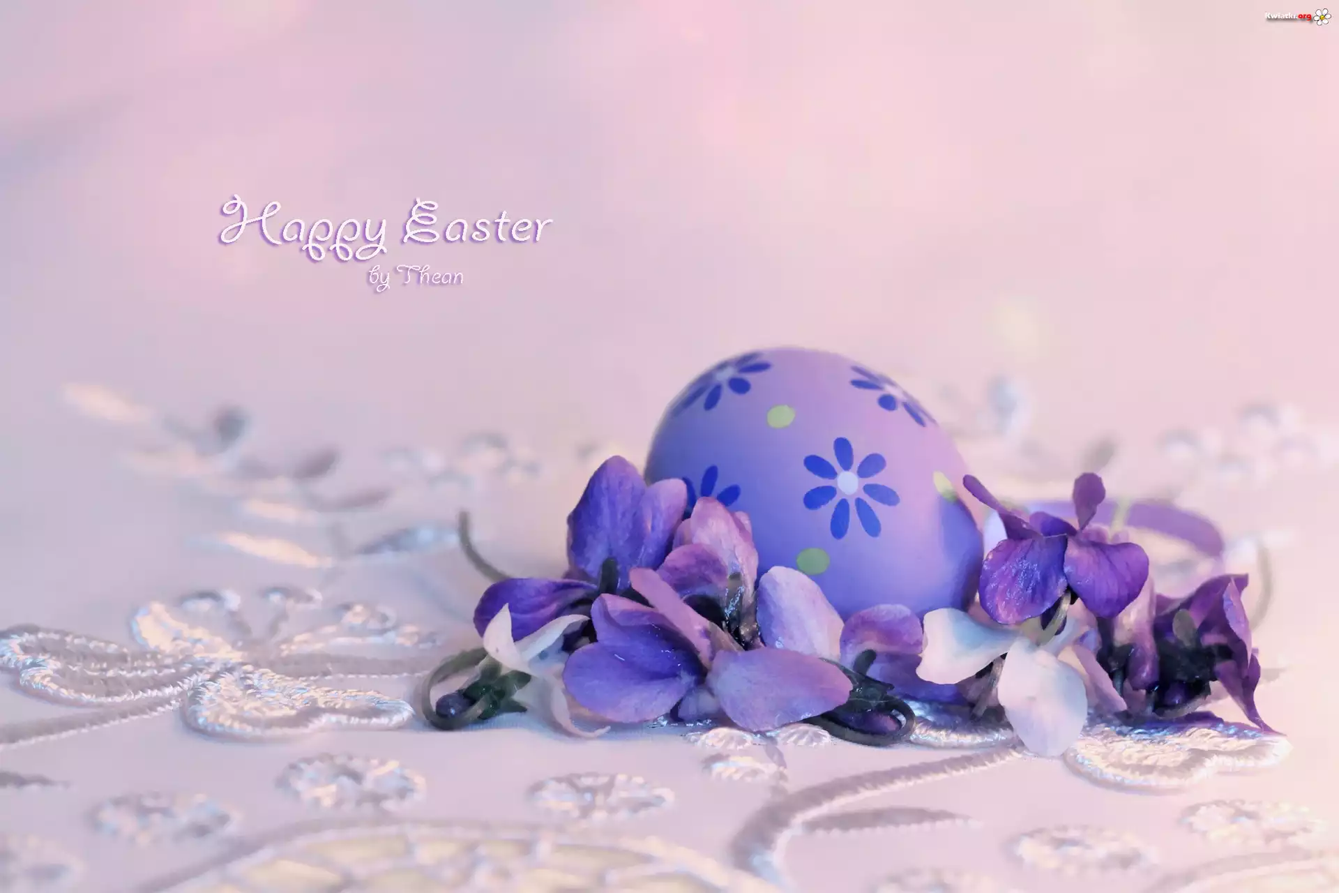 Jajeczko, Fiołki, Święta, Wielkanoc - Zdjęcia