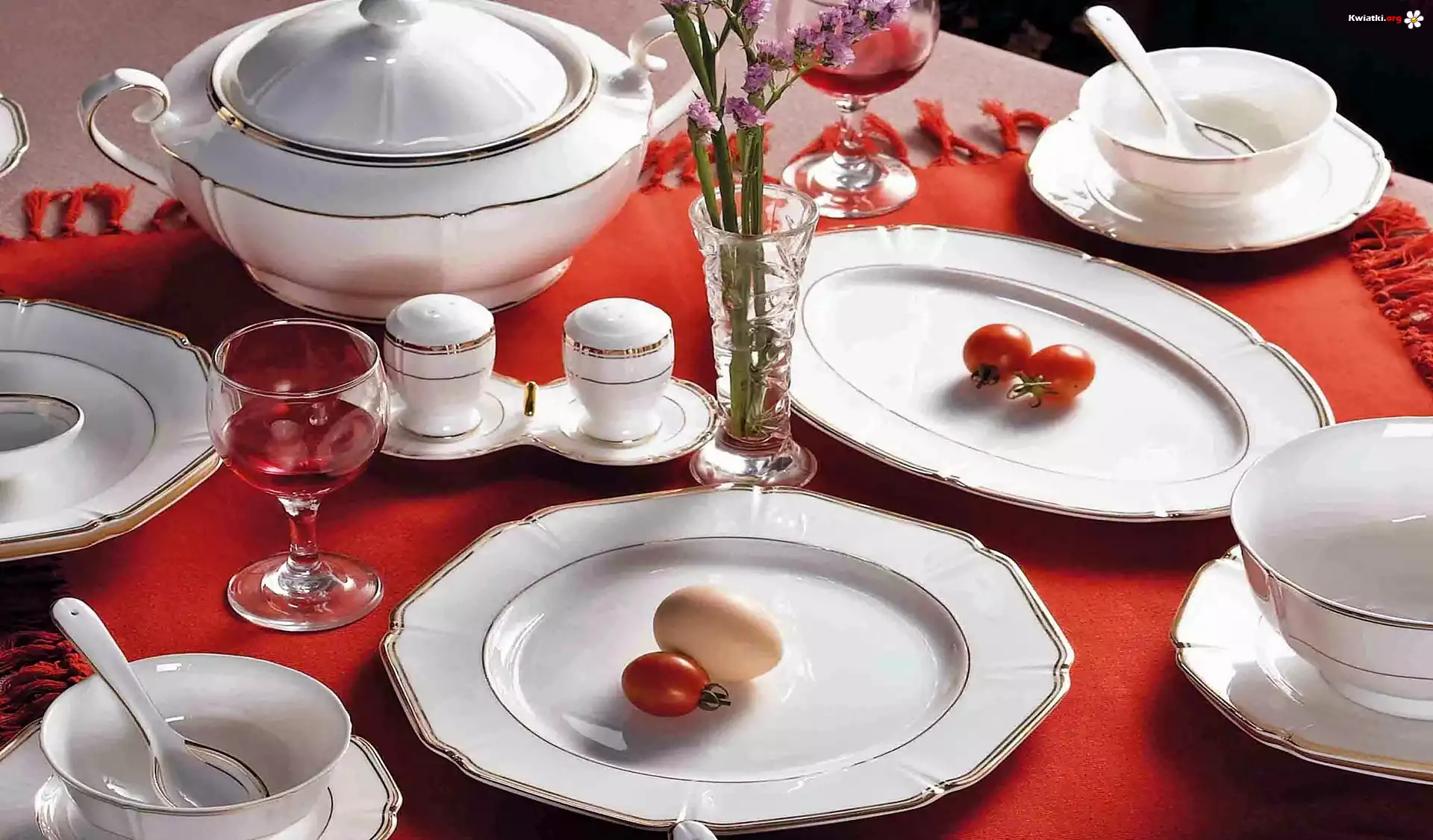 Wino, Jajka, Pomidory, Bukiet, Kwiatków, Zastawa, Porcelanowa - Zdjęcia