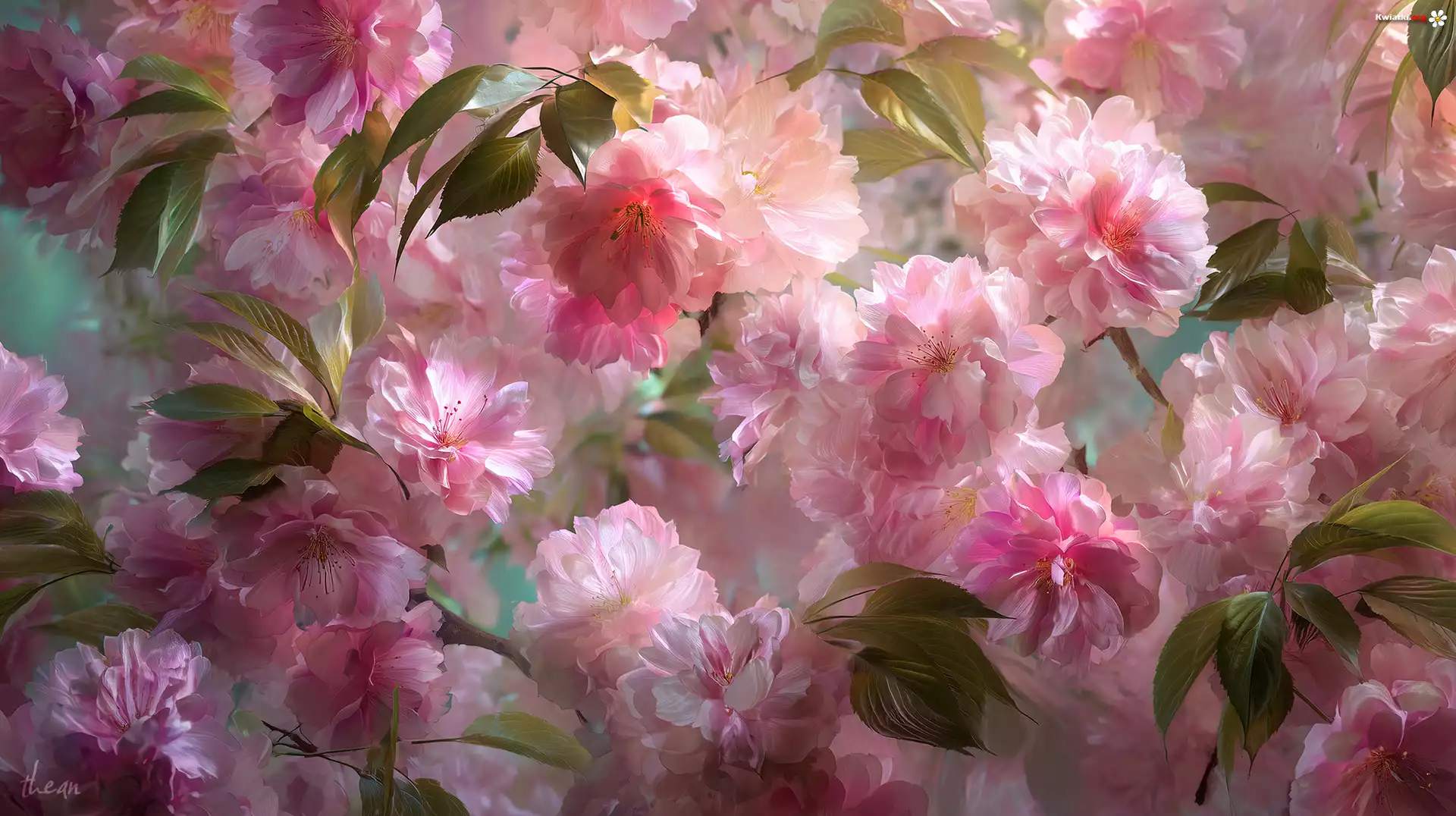 Różowe, Kwiaty, Wiśnia japońska, Grafika AI - Zdjęcia