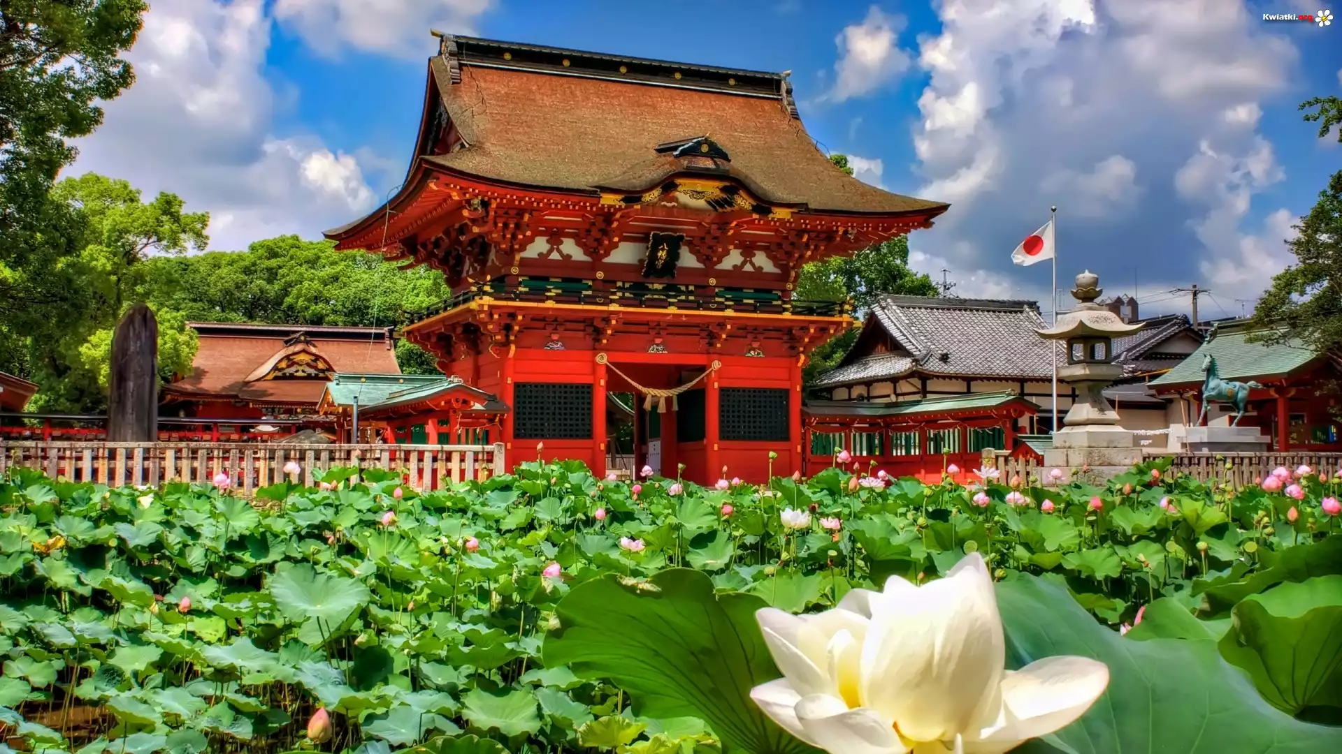 Japoński, Ogród, Wodne, Kwiaty - Zdjęcia