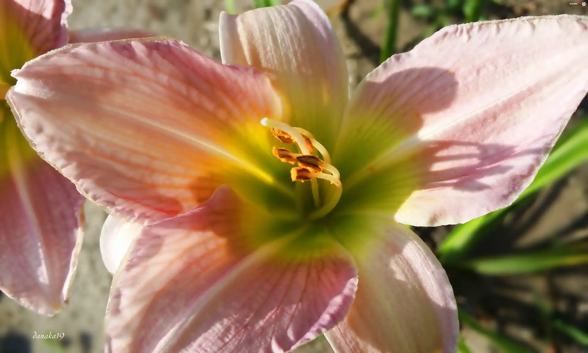 Kwiat Jasno, Różowy, Liliowiec, Zielony, Środek