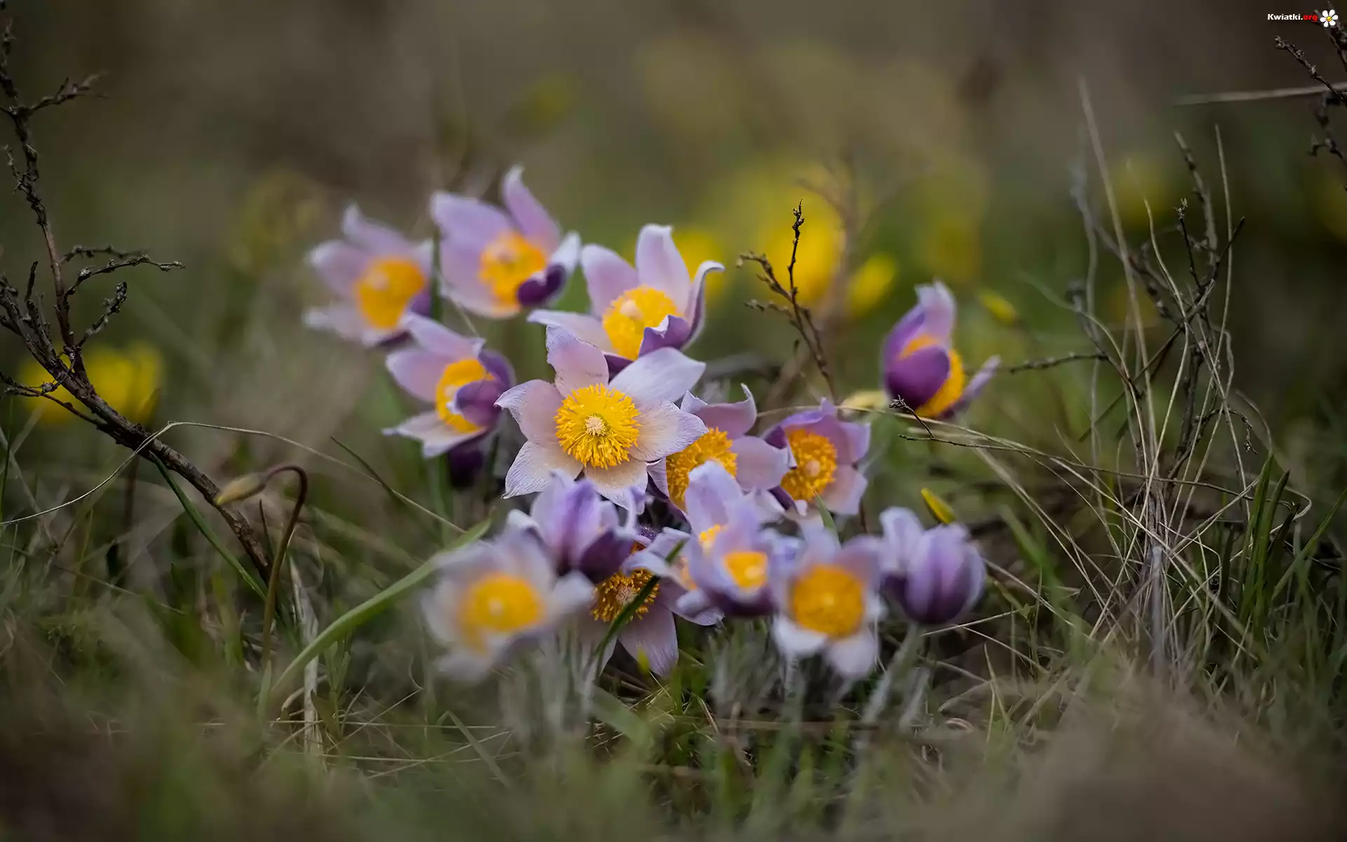 Kwiat Kwiaty, Jasnofioletowe, Sasanki, Trawa