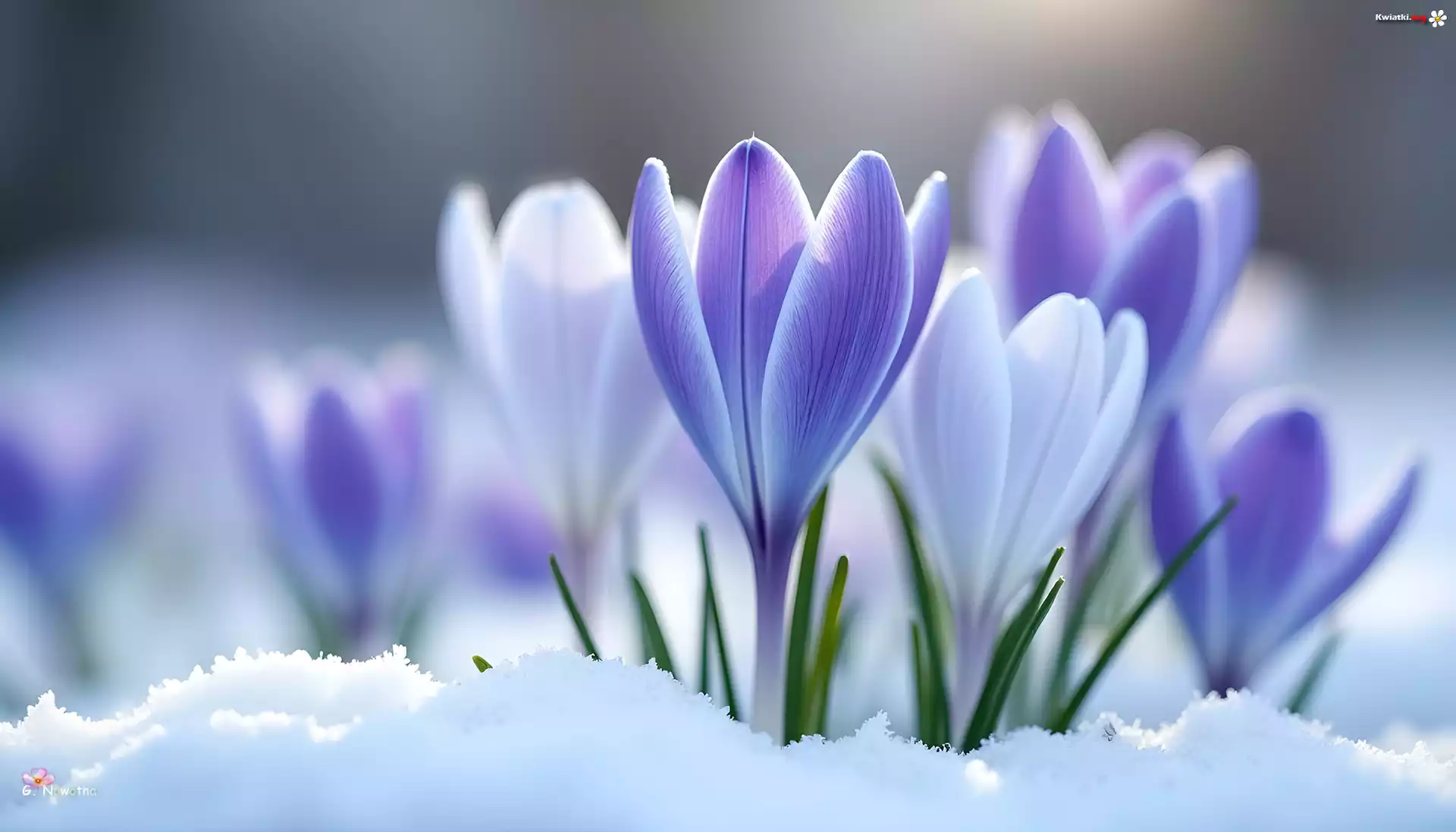 Białe, Jasnofioletowe, Krokusy, Kwiaty, Grafika - Zdjęcia